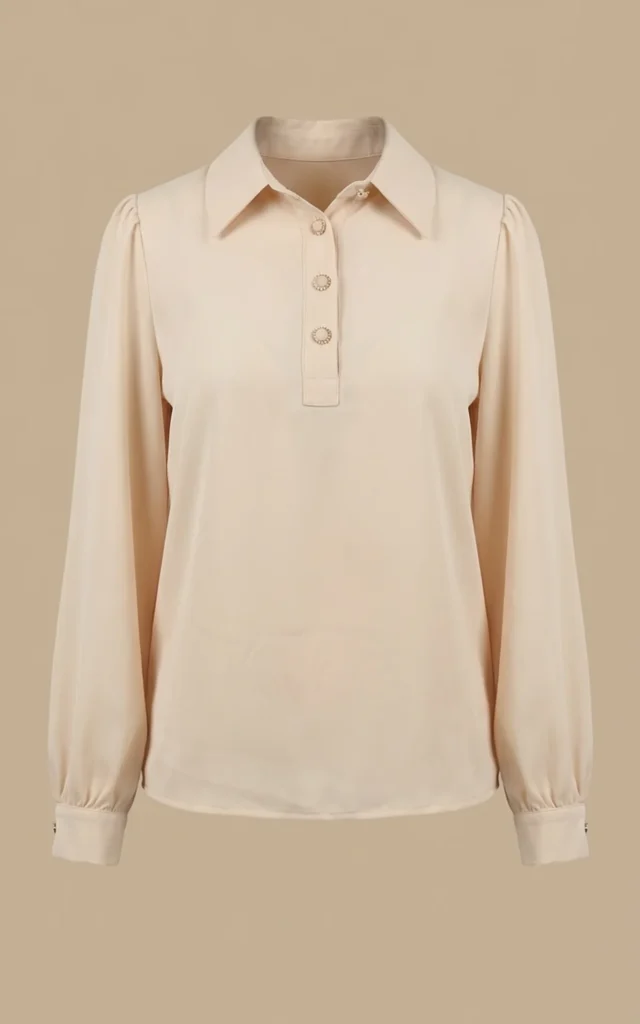 بلوز زنانه کرمرنگ آستین مچدار نوادو کد 404112121726
