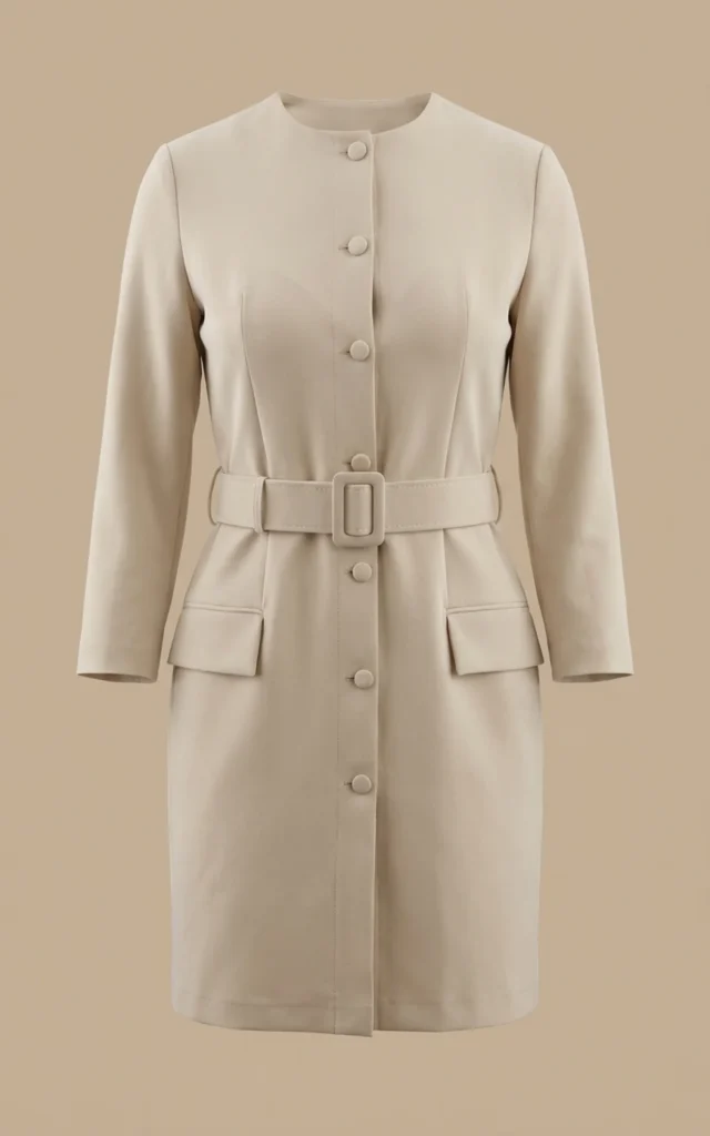 پیراهن زنانه کرم بلند با یقه خشتی نوادو کد 404114201804