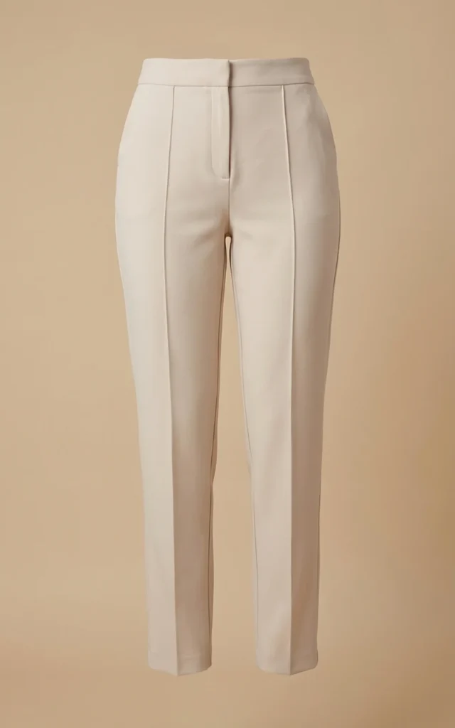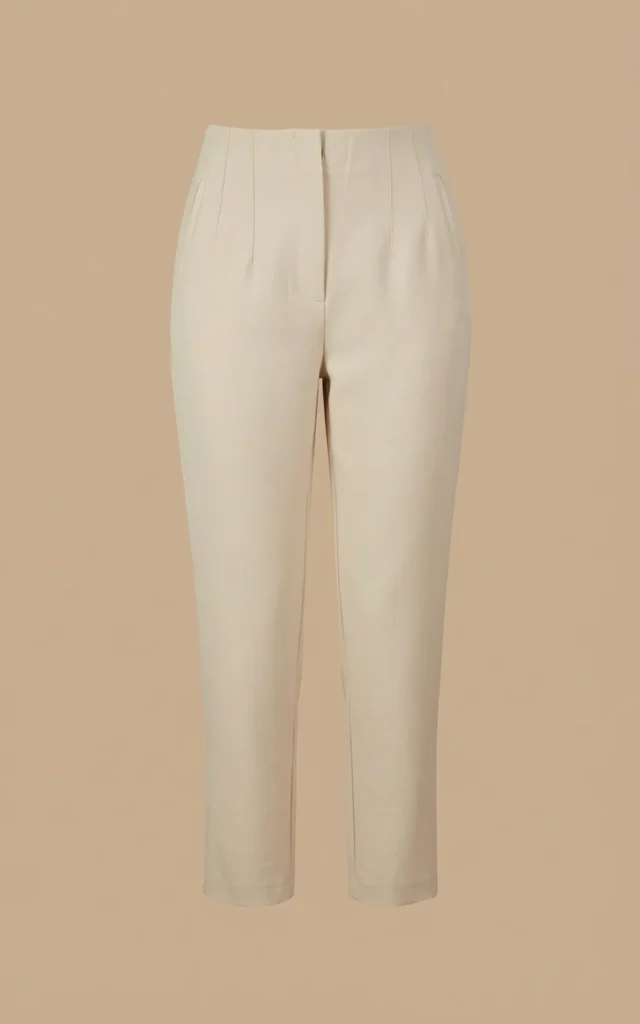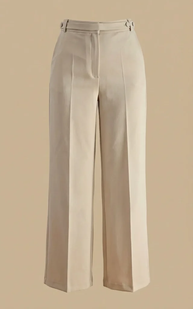 شلوار زنانه کرمرنگ با فاق بلند با پیلیهای ظریف نوادو کد 404123341770