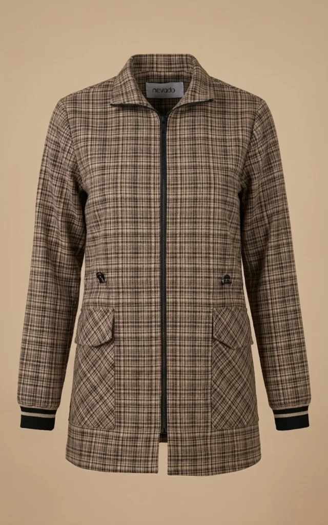کت زنانه چهارخانه زیپدار نوادو کد 404113201297