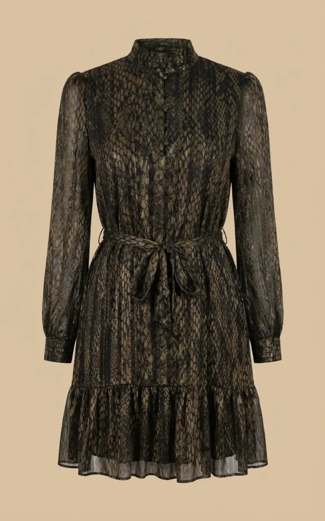 پیراهن زنانه پلنگی کوتاه با دامن و یقه کلوش گرهدار نوادو کد 404014421731