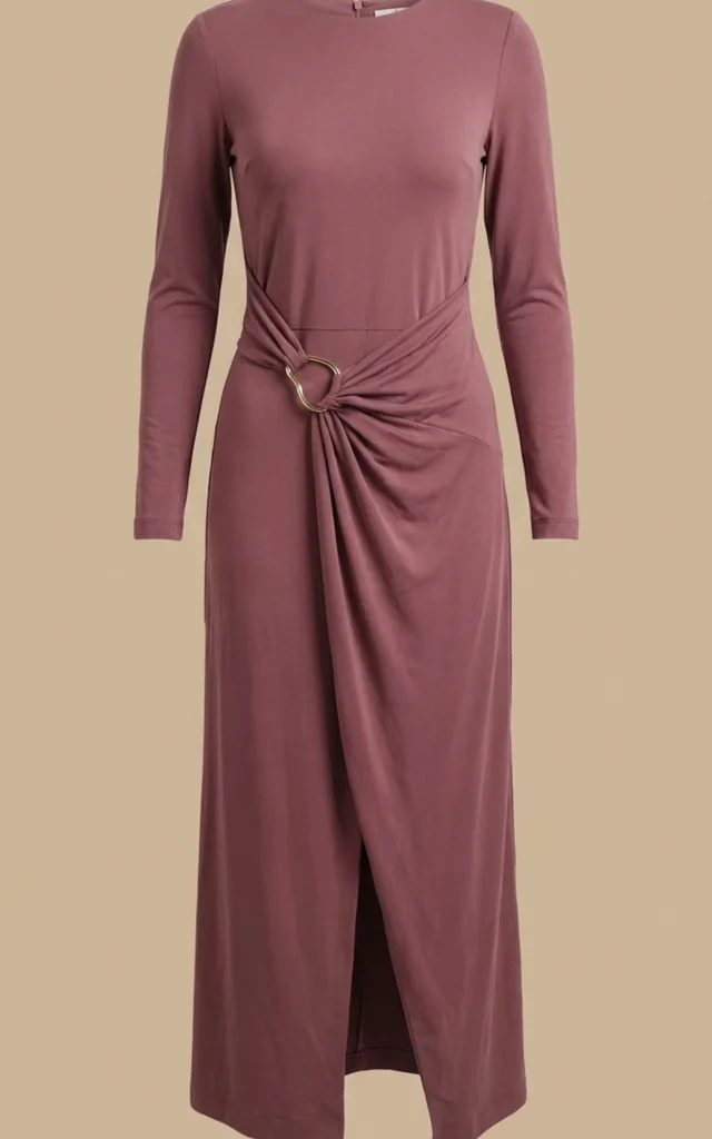 پیراهن زنانه کالباسی بلند با دراپه و سگک کمر نوادو کد 404114191800