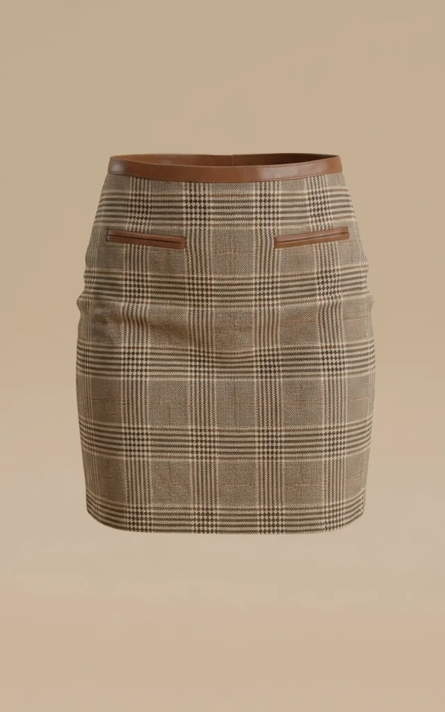 دامن کوتاه چهارخانه با لبهدوزی چرمی نوادو کد 404115111656