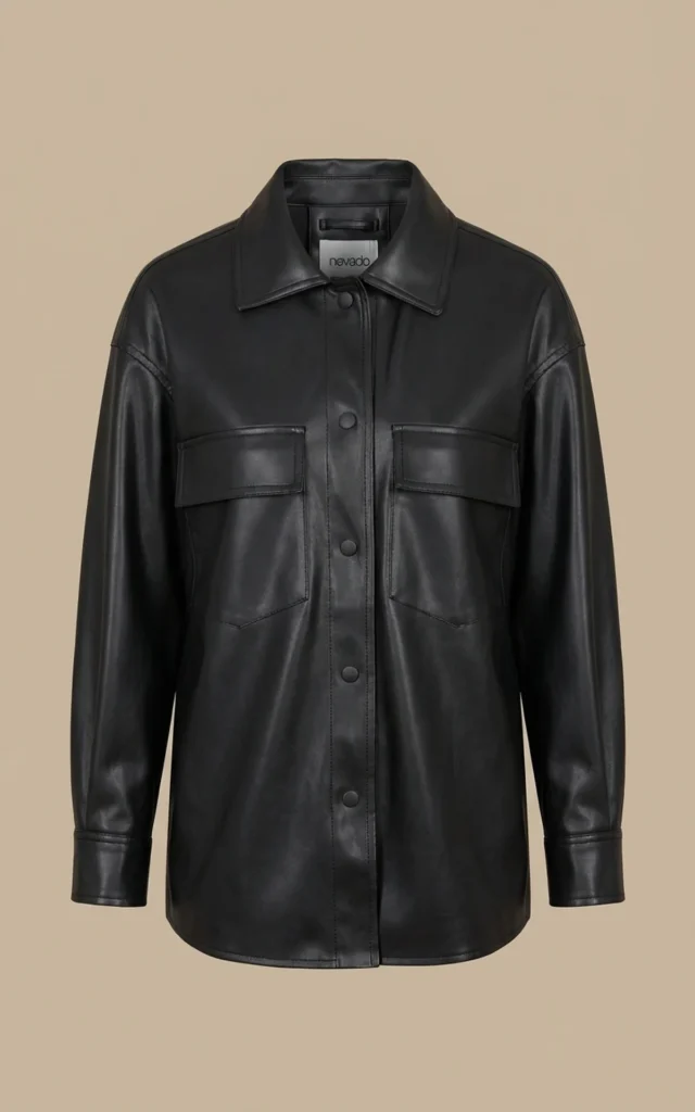 پیراهن زنانه چرمی مشکی دکمهدار با دو جیب نوادو کد 404113161591
