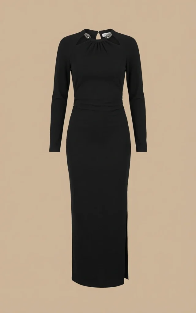 پیراهن زنانه مشکی بلند با یقه گرد نوادو کد 404114221722