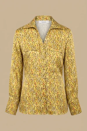 شومیز زنانه طرحدار زرد با یقه باز و کمر اندامی برند نوادو کد 404112411839
