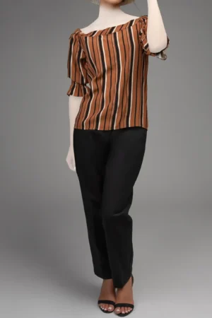 بلوز راه راه زنانه نوادو (Nevado) قهوهای مدل آستین کلوش کد 402112511408