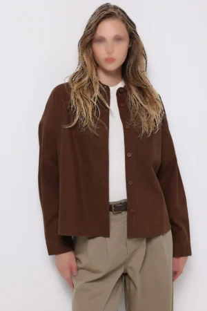 شومیز کتان زنانه قهوهای شکلاتی با تنخور آزاد و استایل مینیمال برند کلینز کد CL1076671