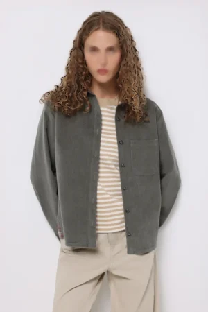 شومیز زنانه مخمل کبریتی سبز دودی با تنخور آزاد برند کلینز کد CL1076672