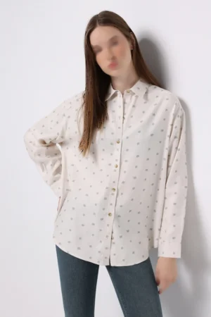 شومیز زنانه سفید استخوانی طرحدار و تنخور آزاد برند کلینز کد CL1077306