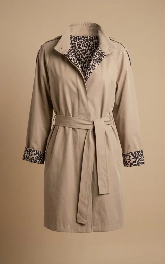 بارانی زنانه کرم با آستر و تزیینات پلنگی نوادو کد 404132071716
