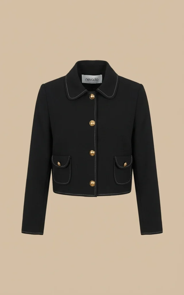 کت زنانه کوتاه مشکی با دکمههای طلایی نوادو کد 404113261844