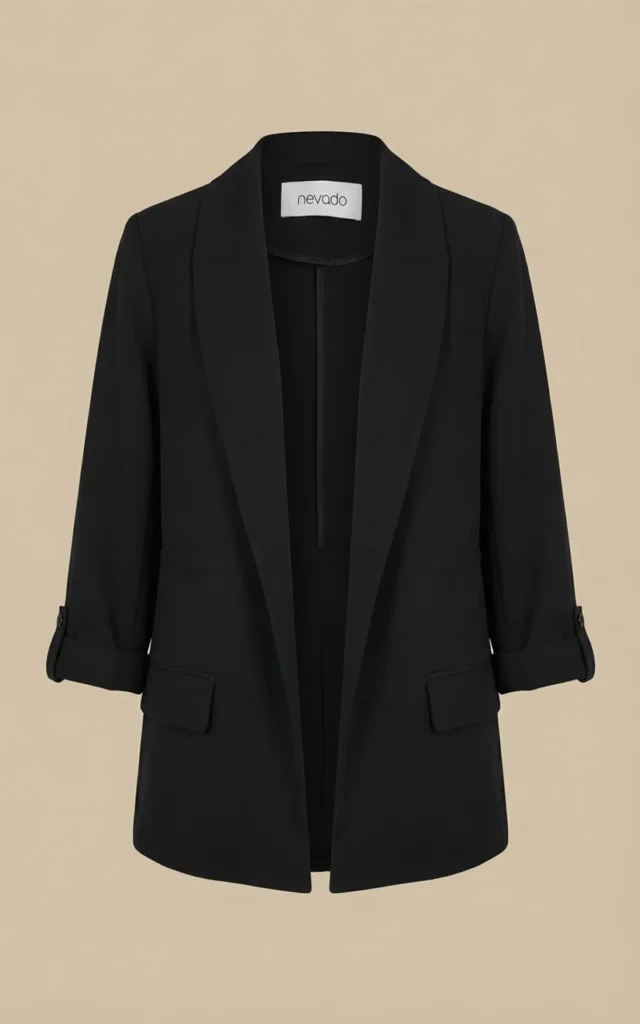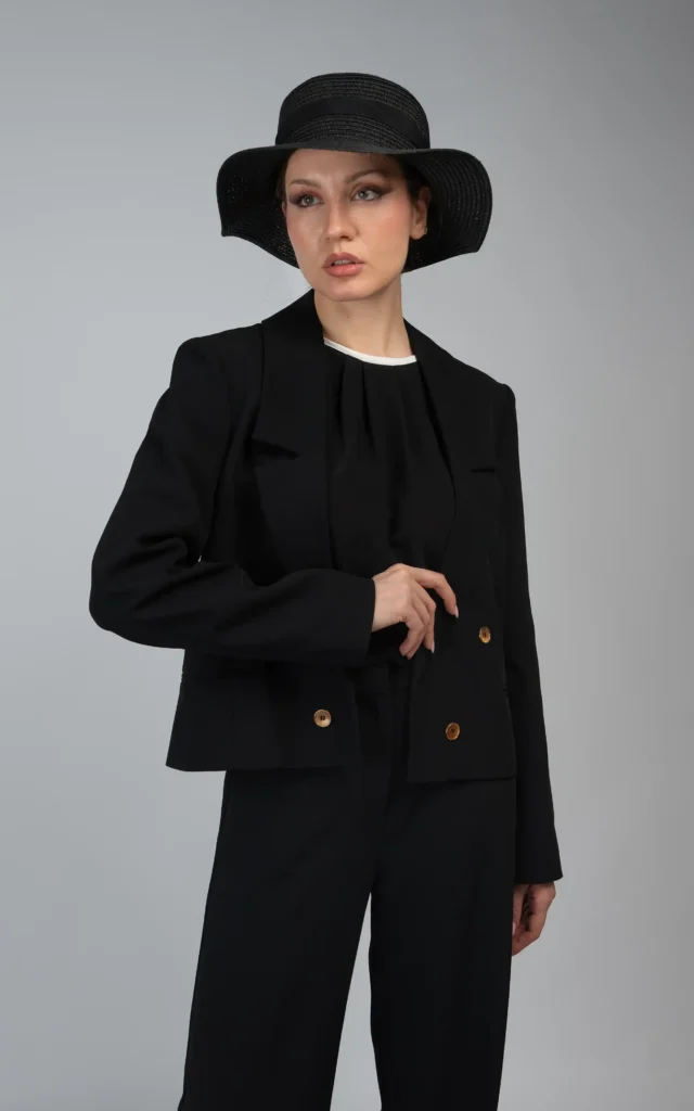 کت زنانه مشکی جلوباز با یقه انگلیسی نوادو کد 404113221701
