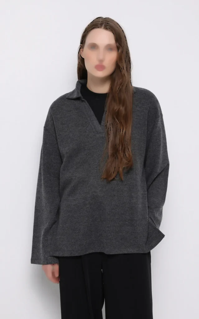 پلیور بافت زنانه زغالی با یقه پولو برند کلینز کد CL1076712