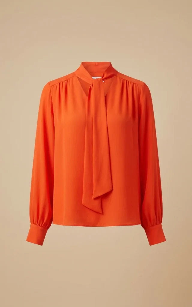بلوز زنانه نارنجی با یقه کراواتی بلند و آستینهای مچدار نوادو کد 404112371870
