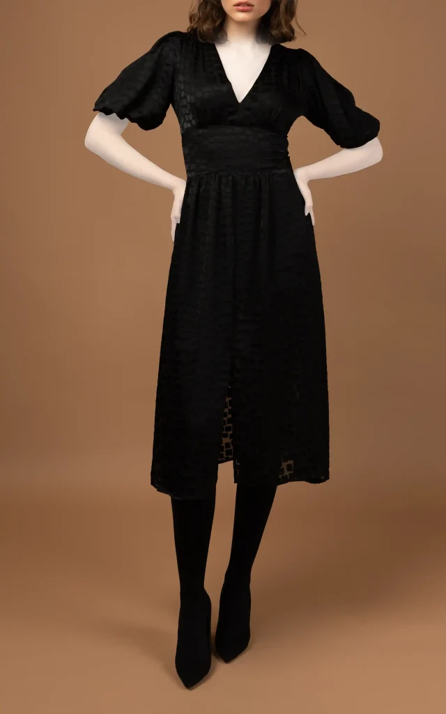 پیراهن زنانه مشکی بافتدار با یقه هفت و آستین پفی برند نوادو کد 403014231434