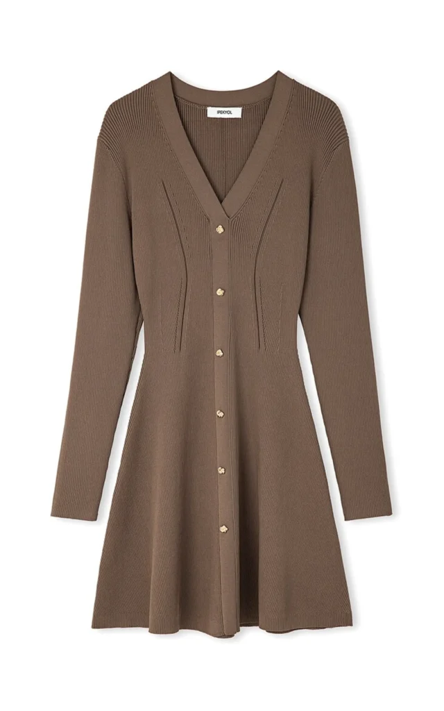 پیراهن زنانه بافت قهوهای با یقه هفت و دکمههای طلایی برند IPEKYOL کد IW6240002267