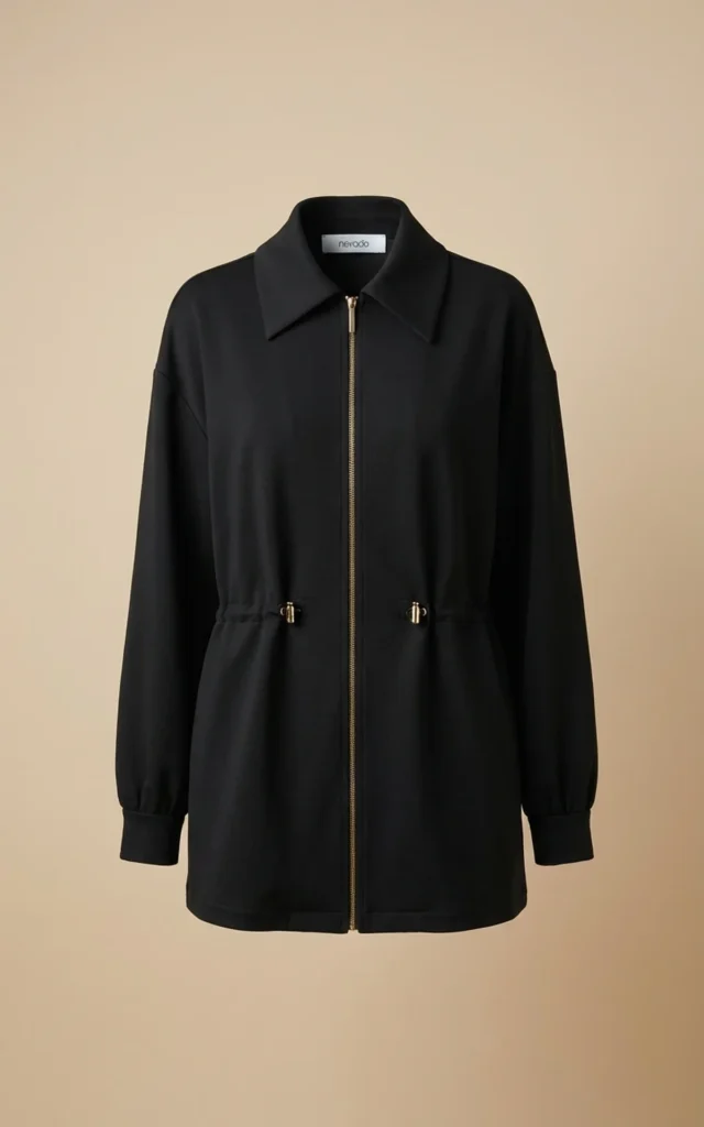 ژاکت مشکی زنانه یقه برگردان و کمر گتدار نوادو کد 404127021776