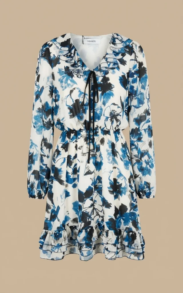 پیراهن زنانه گلی با یقه کلوش و بند گرهای نوادو کد 404114231814