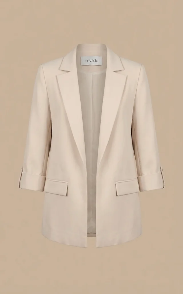 کت زنانه بژ دکمهدار با یقه انگلیسی نوادو کد 404113241842