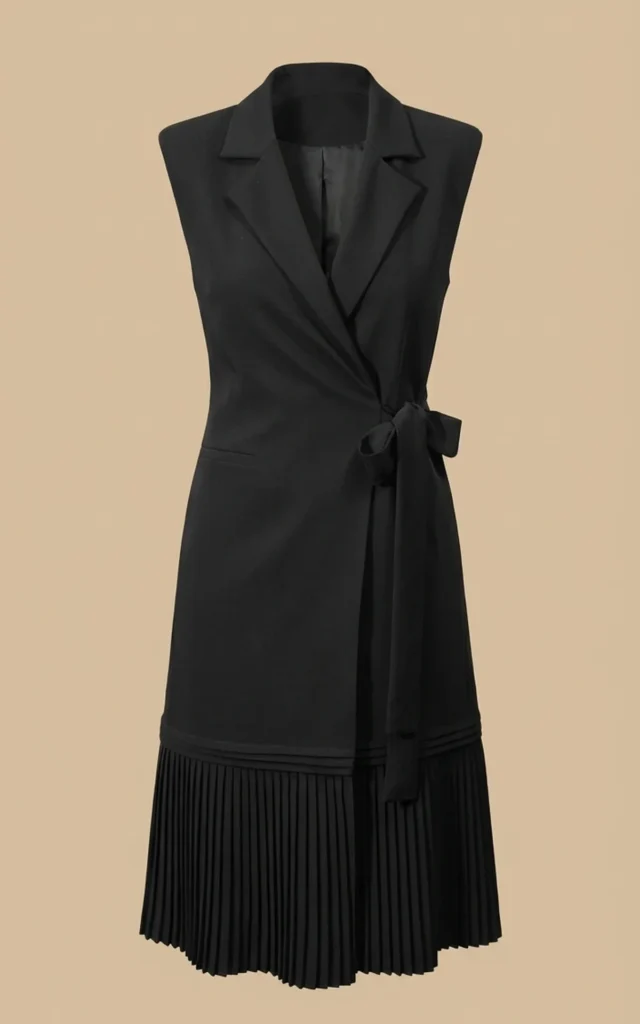 پیراهن زنانه کوتاه حلقهای با دامن پلیسه و زیپ جلو برند adL کد 12442872003