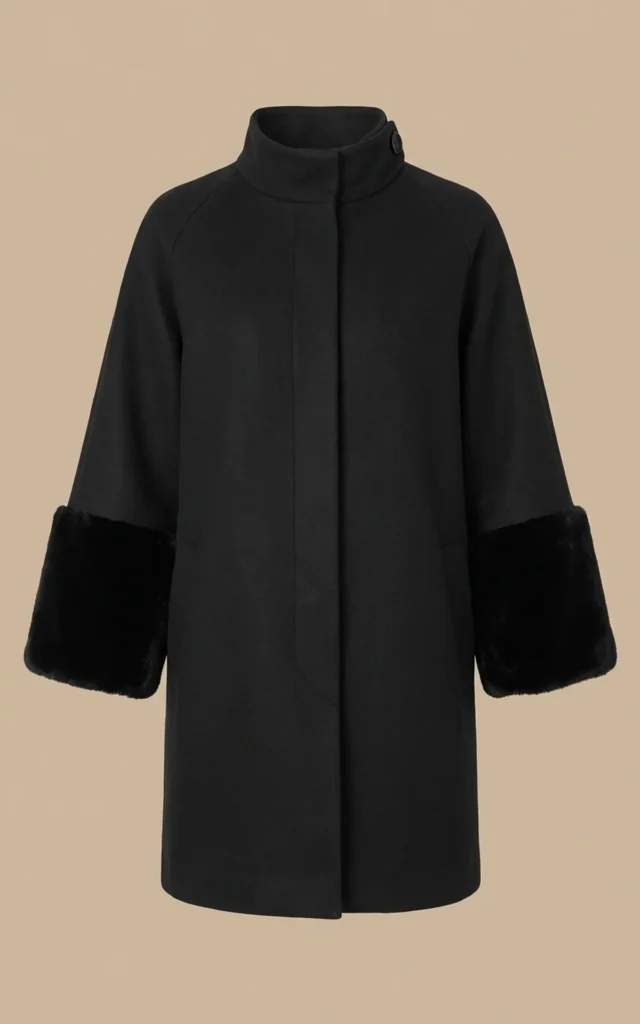 پالتو مشکی زنانه یقه ایستاده، سرآستینهای خزدار نوادو کد 404118051875