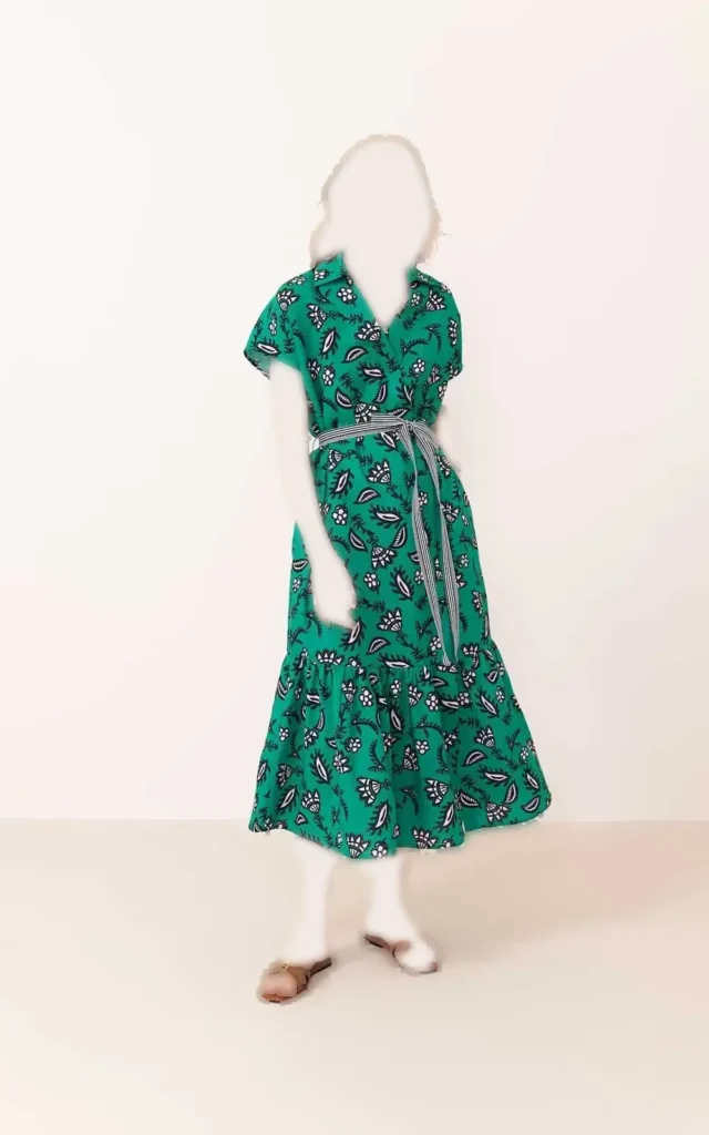 پیراهن زنانه سبز با طرح بتهجقه و کمربند راهراه برند ROMAN کد Y2411047