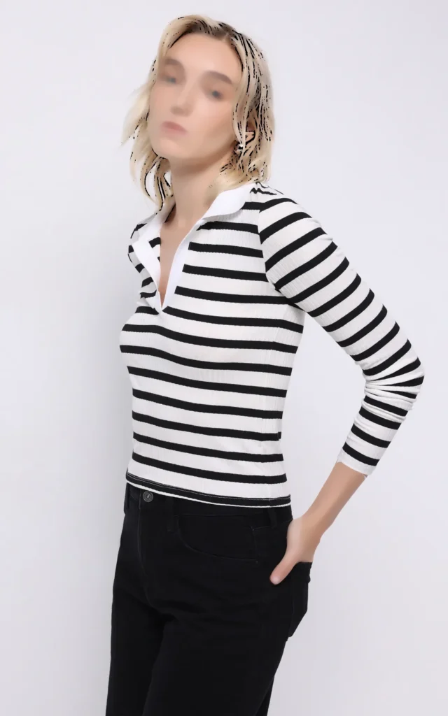 بلوز راهراه سیاهوسفید با یقه پولو برند کلینز کد CL1075895