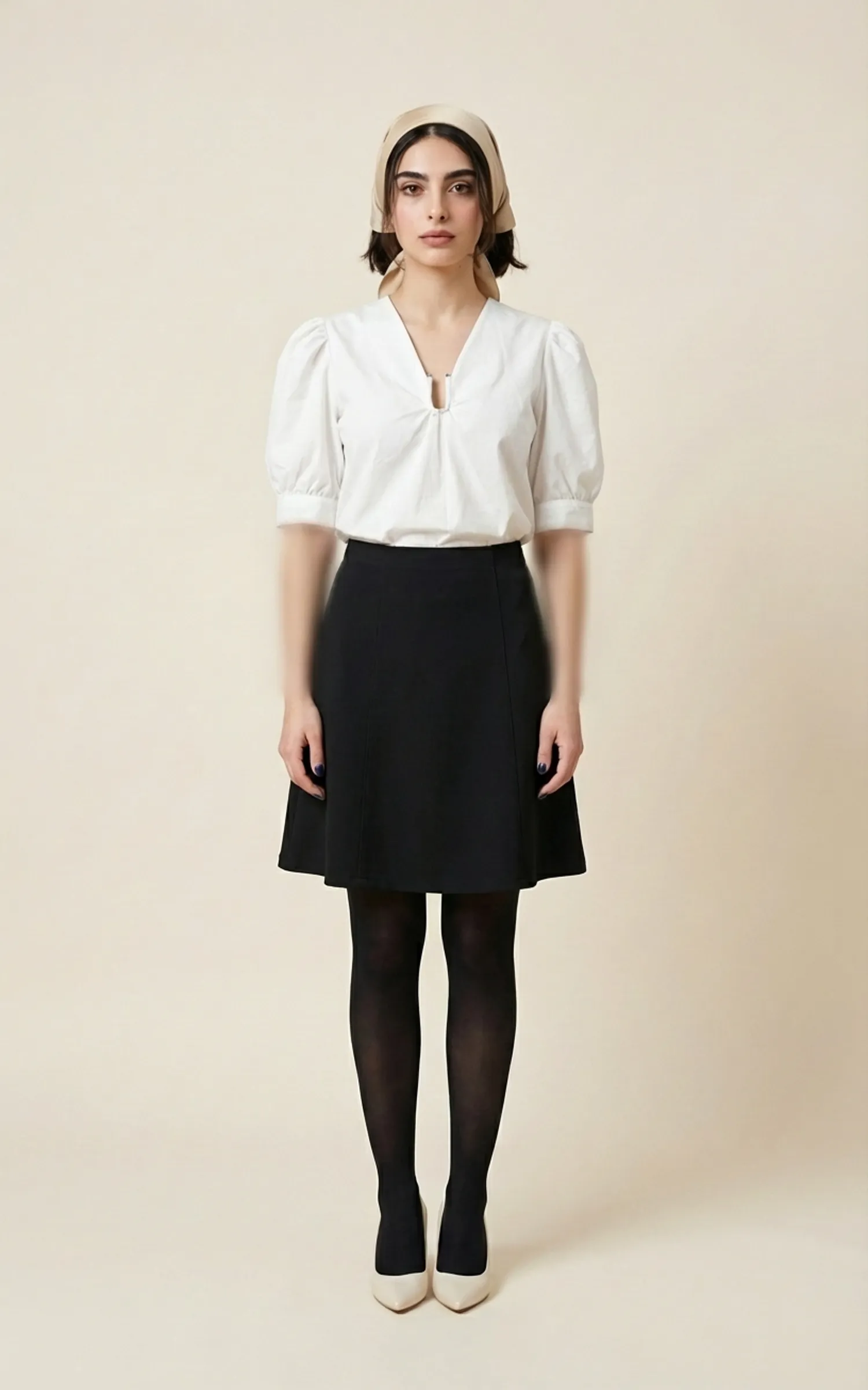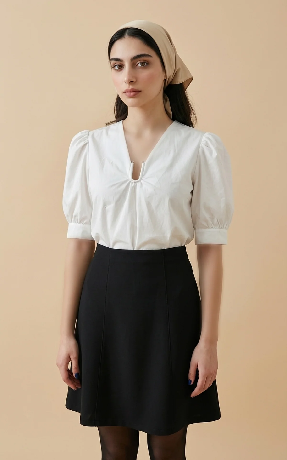 رنگ سفید و سادگی مدل این بلوز زیبای زنانه، به گونهای است که ست آن به همراه یک شلوار جذب و ساده و یا به همراه یک دامن کوتاه و عروسکی در تناژ رنگی متضادی مانند مشکی، قرمز، ارغوانی یا نارنجی، به جذابیت استایل بانوان میافزاید.