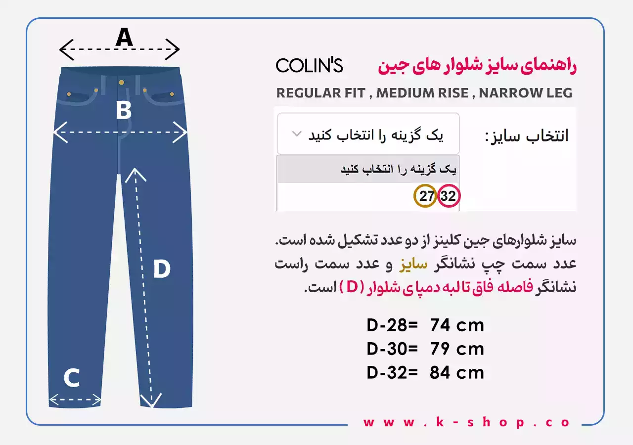 راهنمای سایز شلوار زنانه کلینز 793
