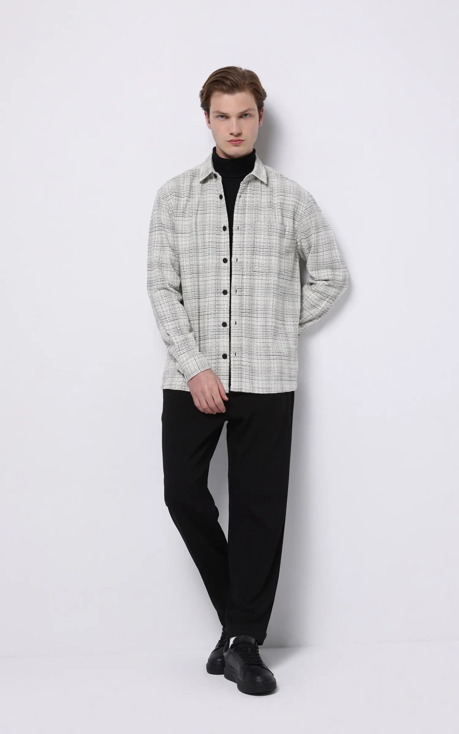 شومیز زنانه مشکی با طراحی دو بافته و یقه کلاسیک پهن برند IPEKYOL کد IW6250025071