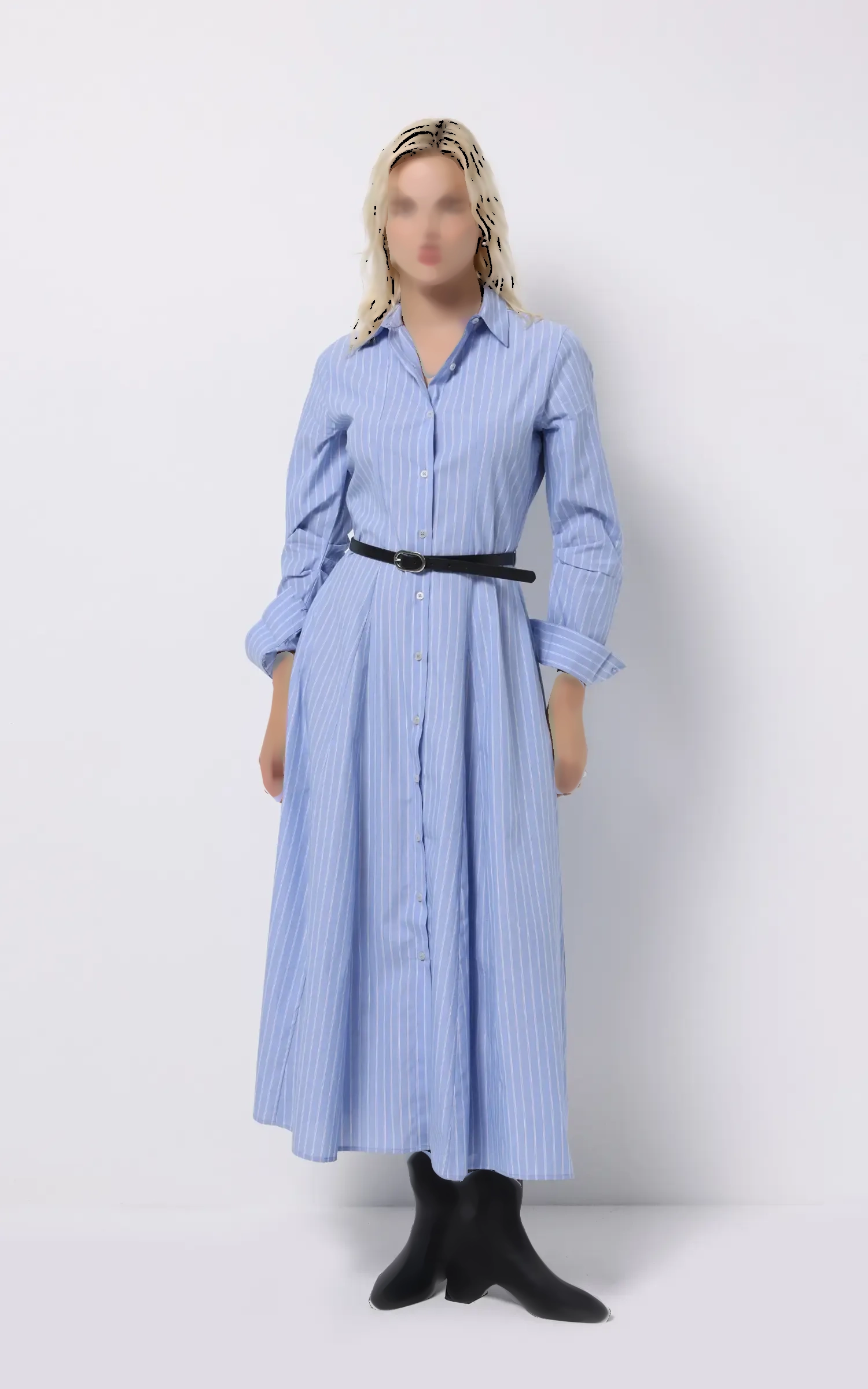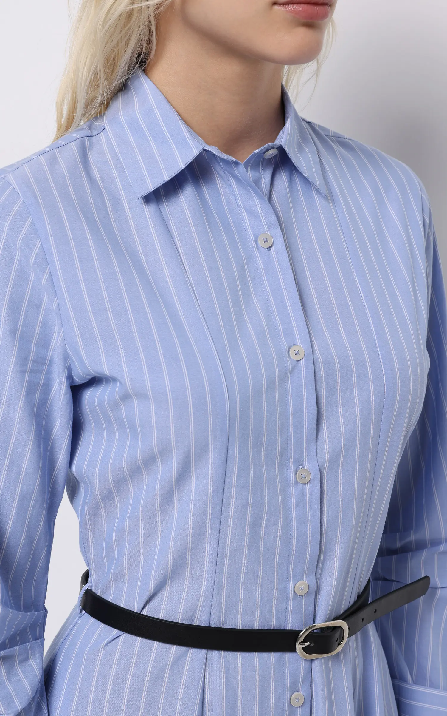 پیراهن شومیزی زنانه آبی با طرح راهراه عمودی برند کلینز کد CL1075584