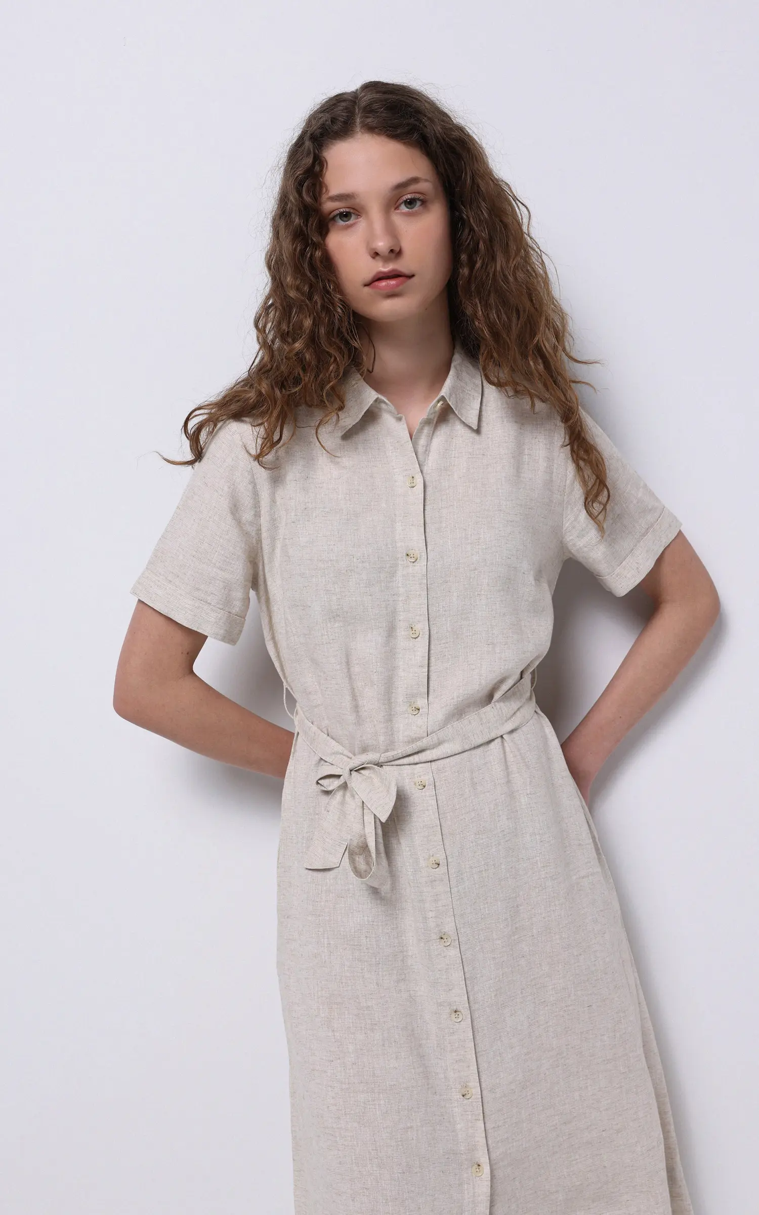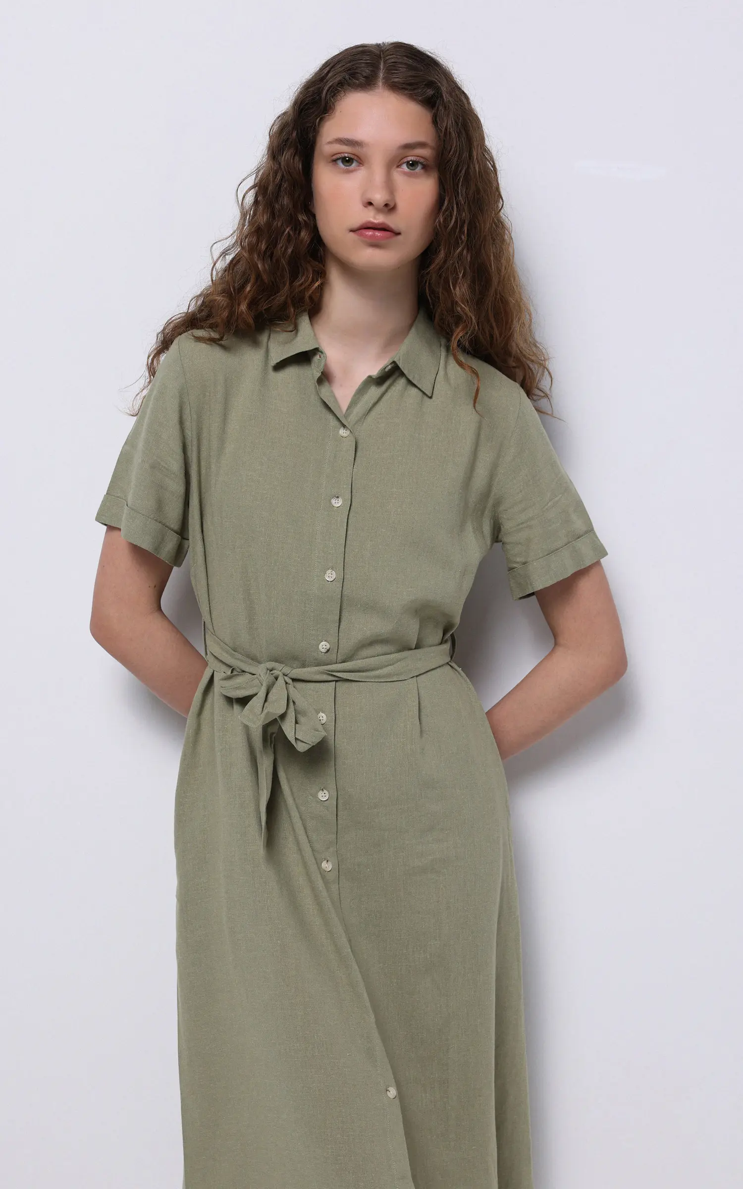 پیراهن لینن زنانه کولینز (Colin’s) مدل دکمهدار کمربنددار کد CL1068244