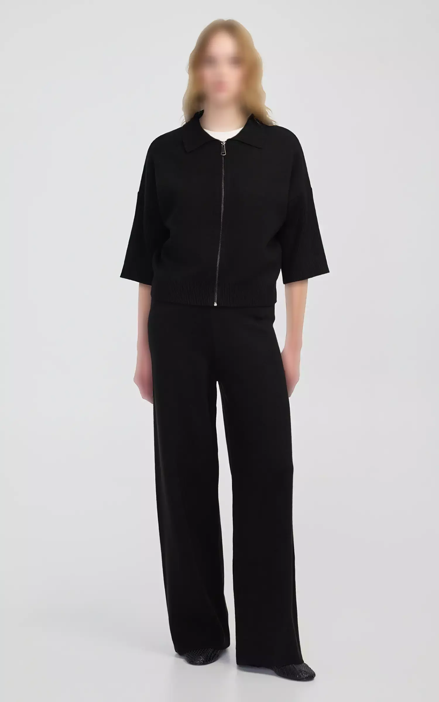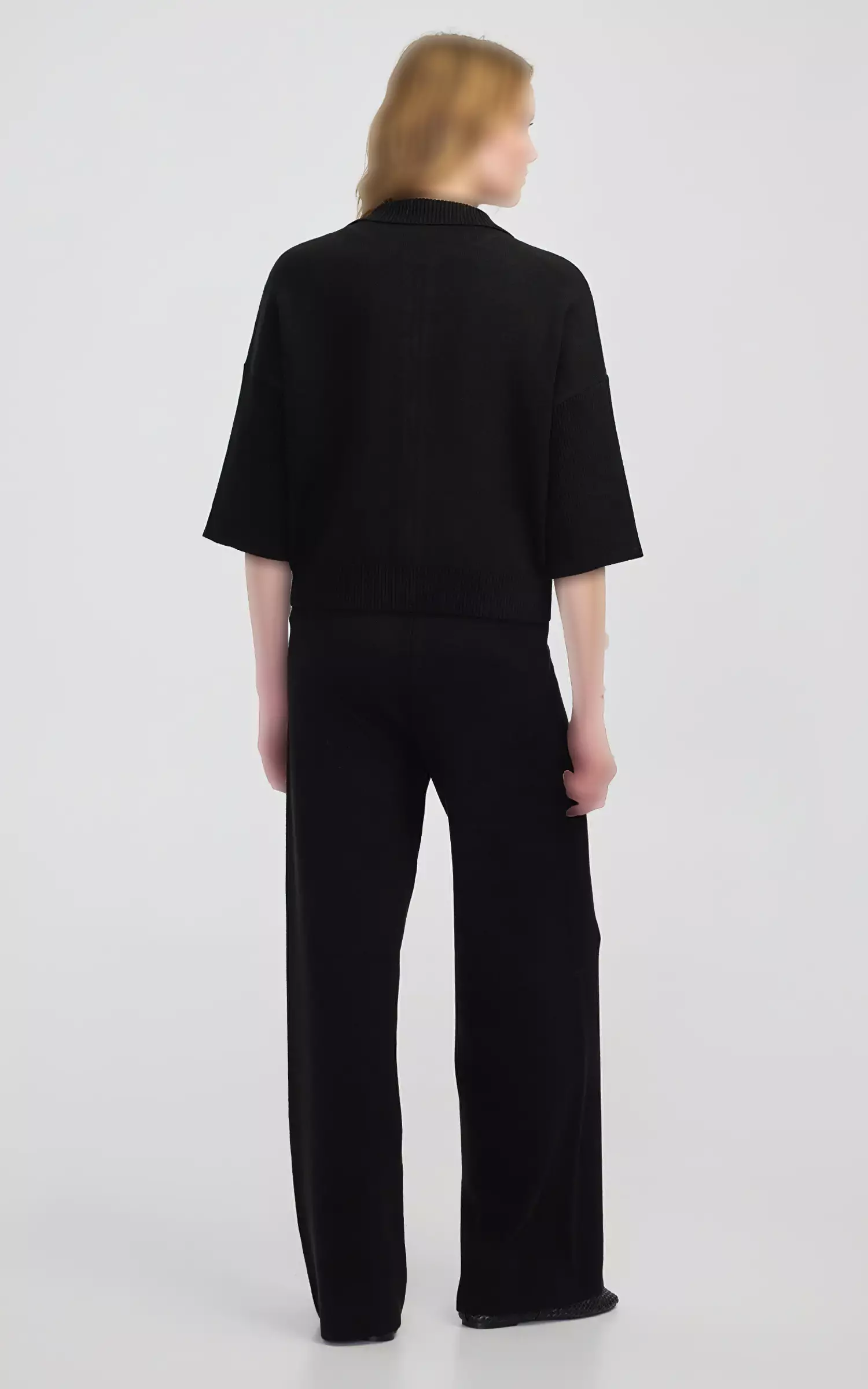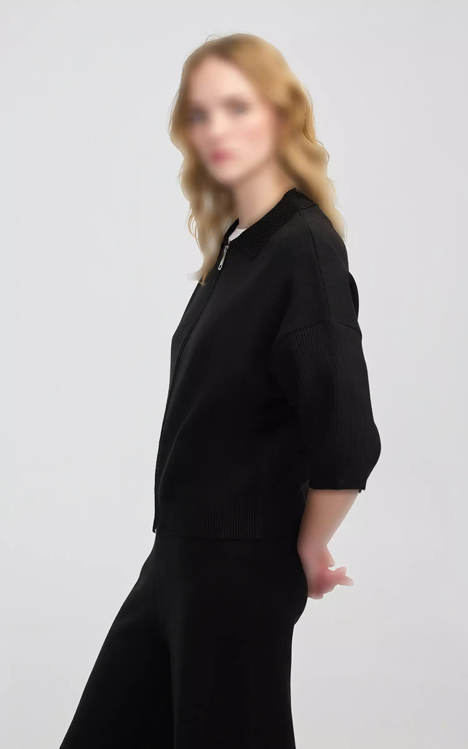 شومیز زنانه مشکی با طراحی دو بافته و یقه کلاسیک پهن برند IPEKYOL کد IW6250025071