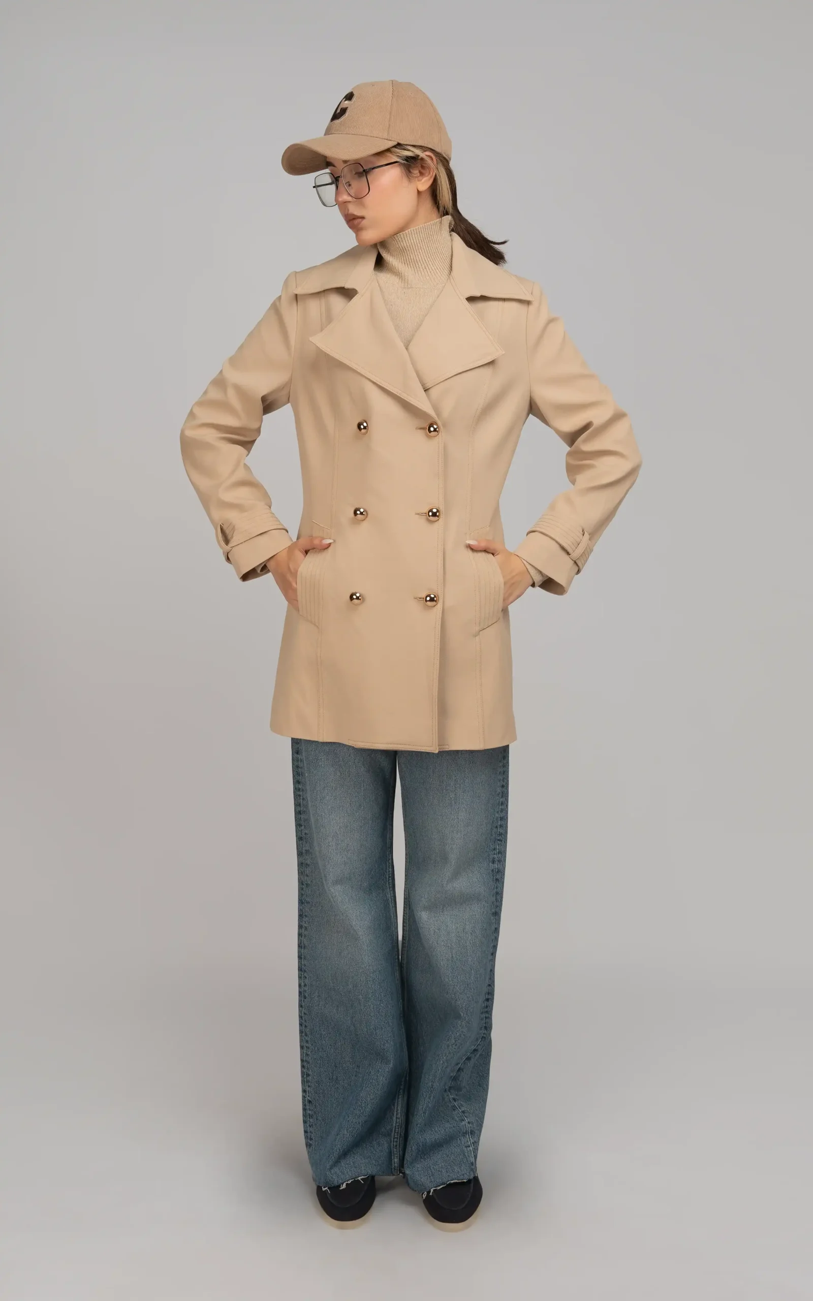 رنگ روشن و ملایم و مدل کوتاه بارانی زنانه کرم رنگ نوادو، یک انتخاب پاییزی و اسپرت جذاب برای انواع موقعیتها و میهمانیهای دوستانه و مجلسی است.