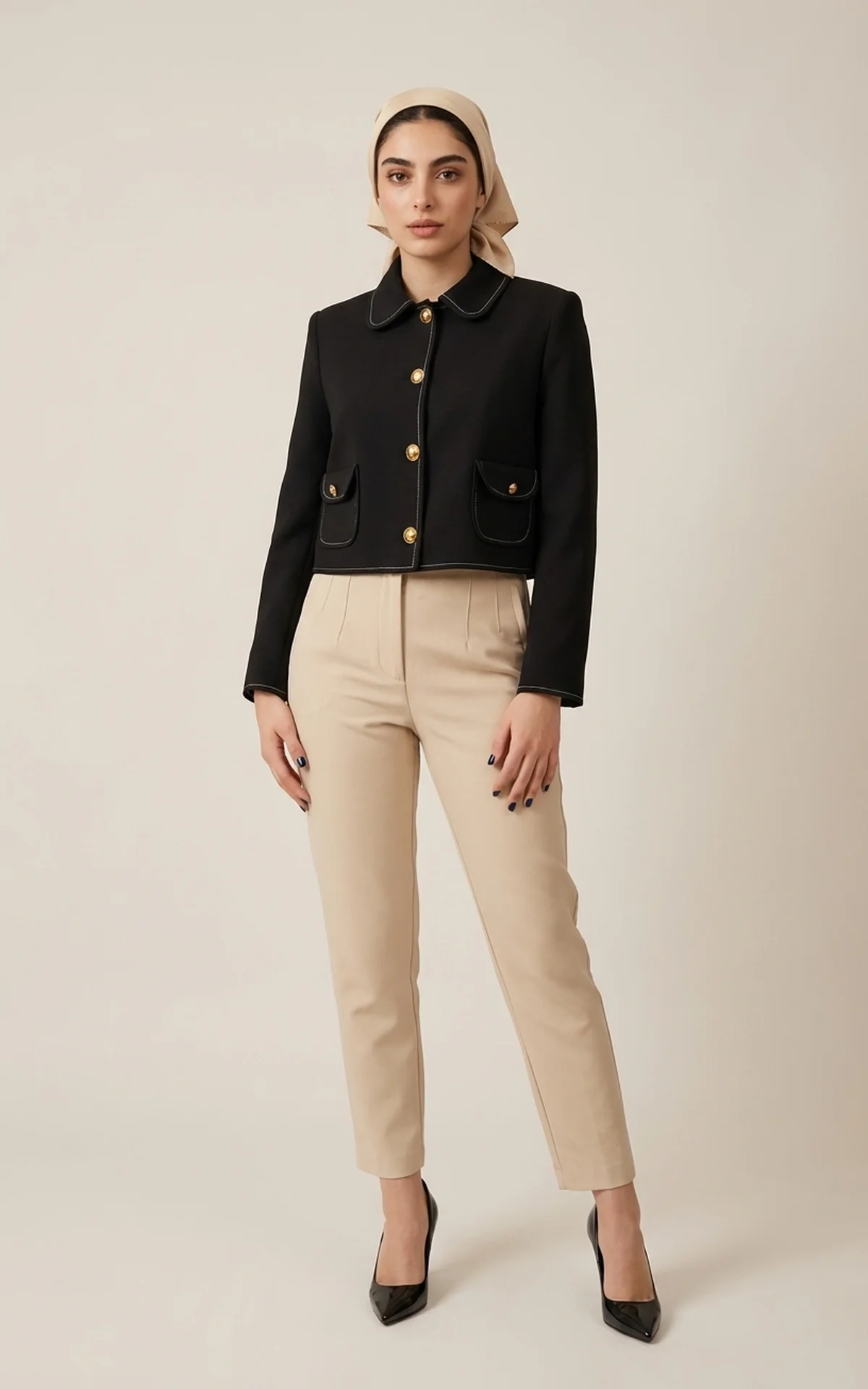 کت زنانه کوتاه مشکی با دکمههای طلایی نوادو کد 404113261844