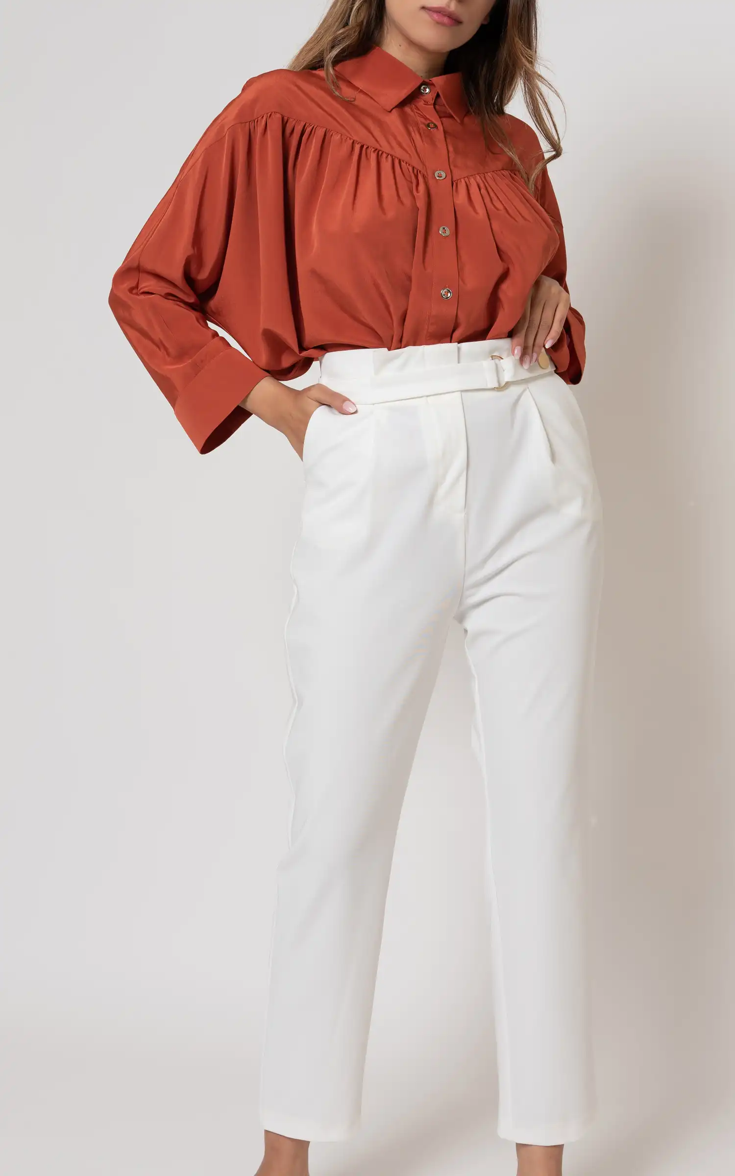 شومیز زنانه سفید با گلدوزیهای ظریف و تنخور کلاسیک برند کلینز کد CL1075570