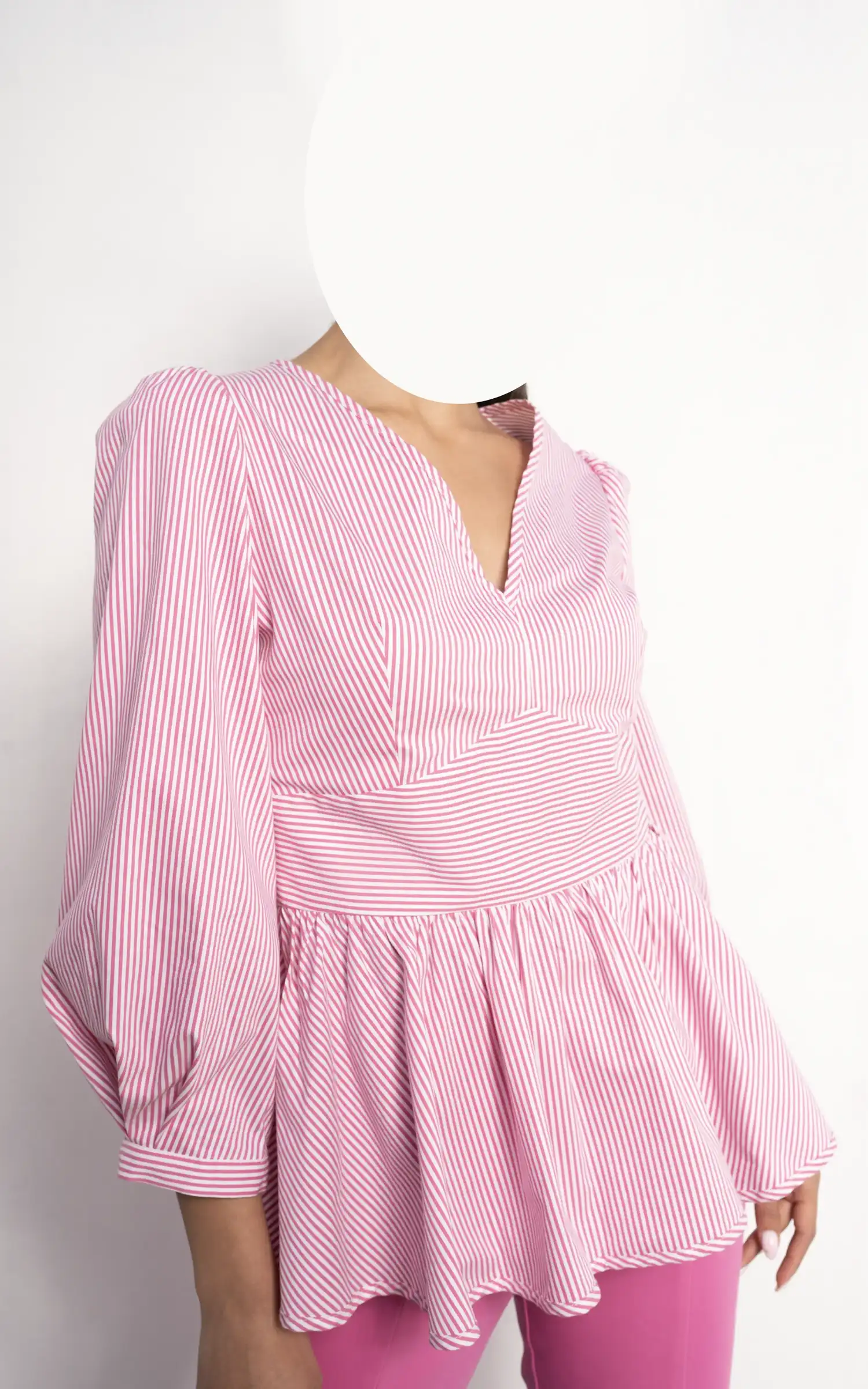 بلوز راه راه زنانه نوادو (Nevado) صورتی مدل یقه هفت آستین پفی کد 402012431329