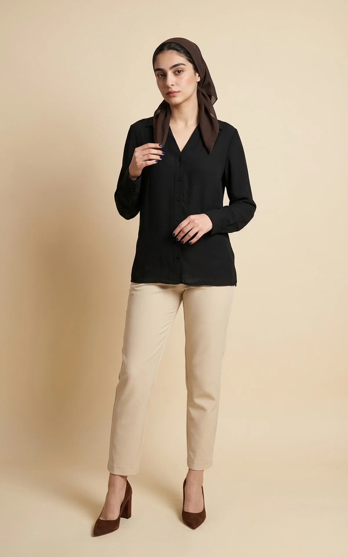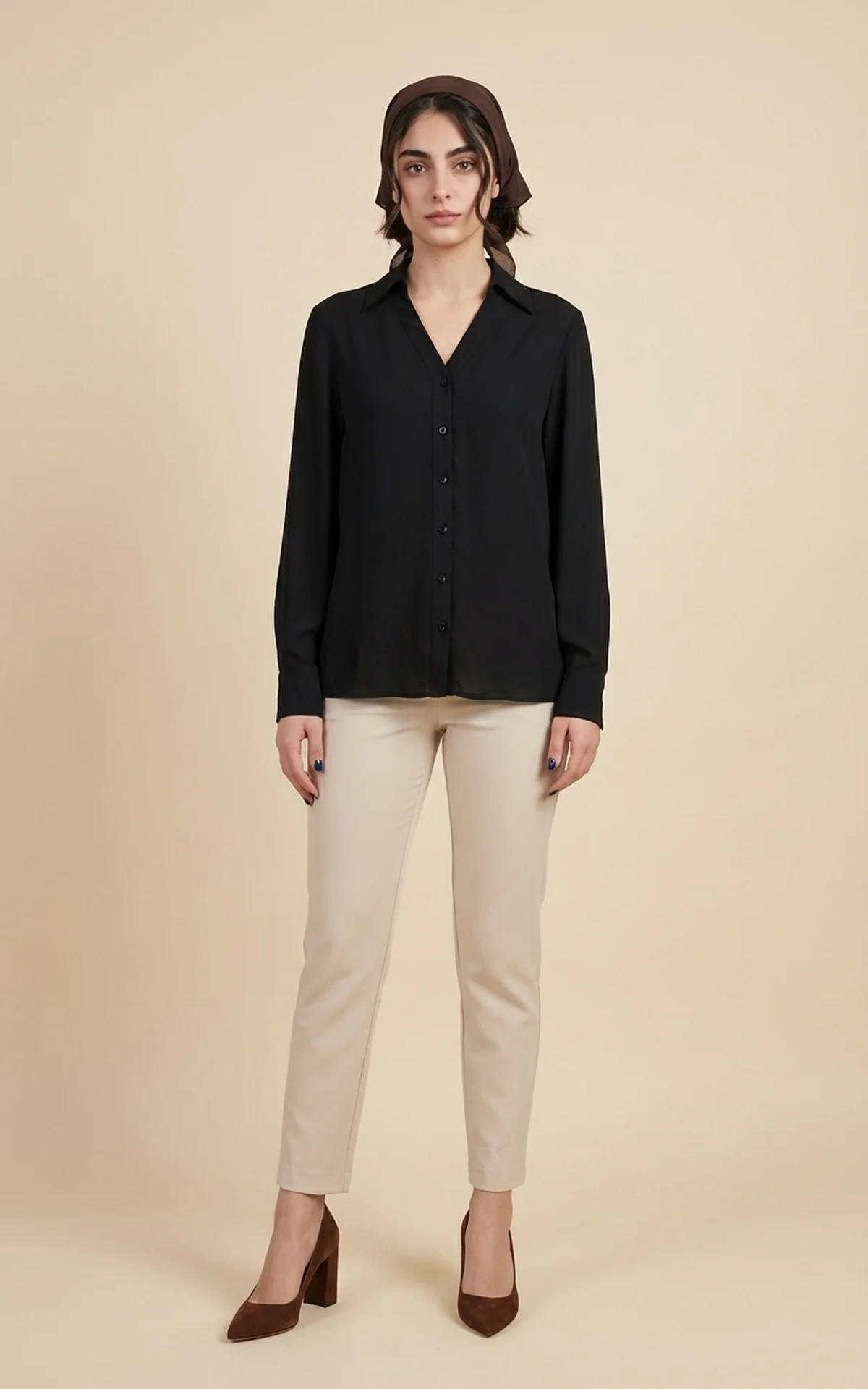 شومیز زنانه مشکی دکمهدار با یقه کلاسیک نوادو کد 404012721685