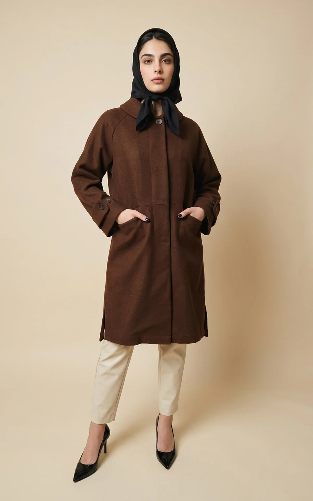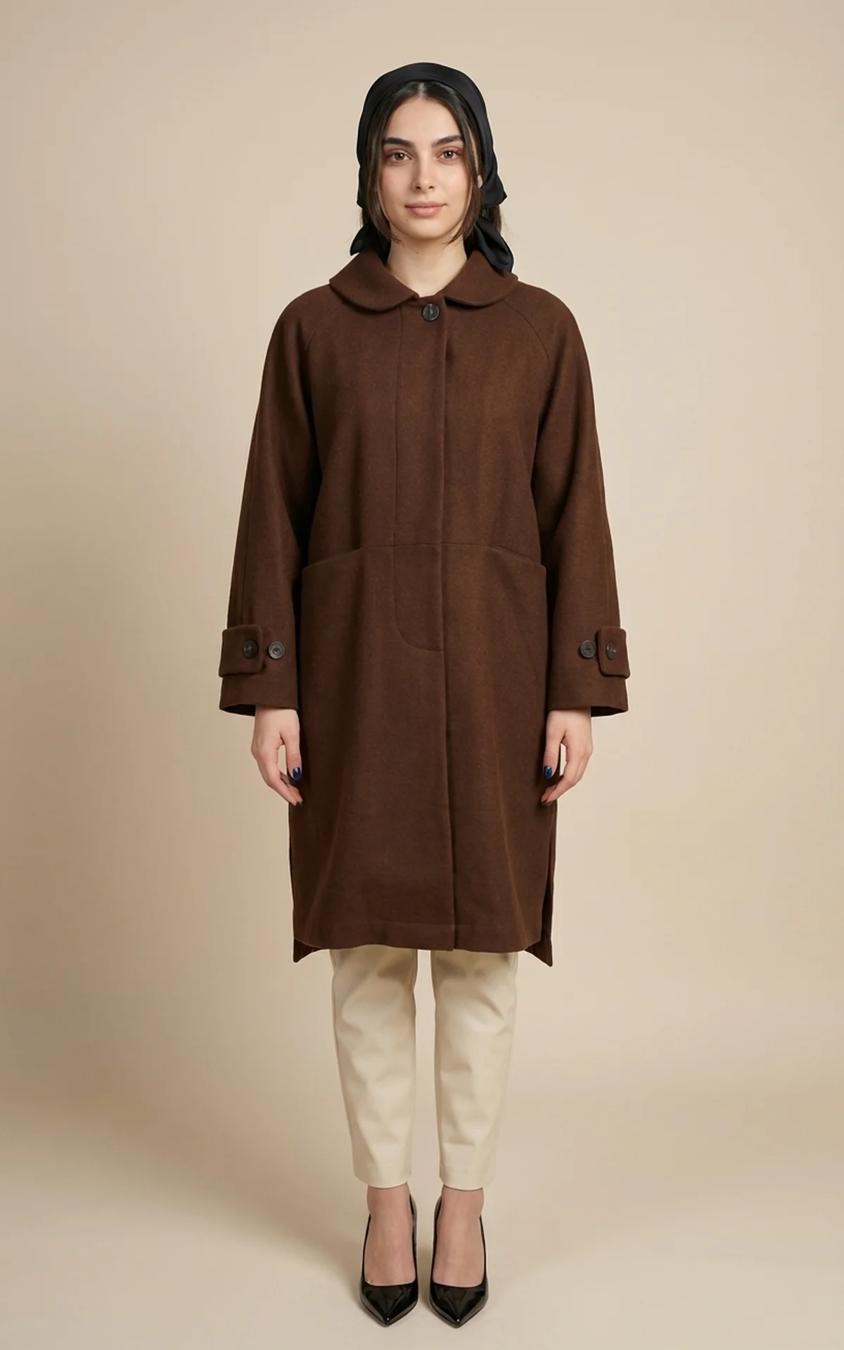 پالتو زنانه قهوهای بلند با یقه برند نوادو کد 404018041669