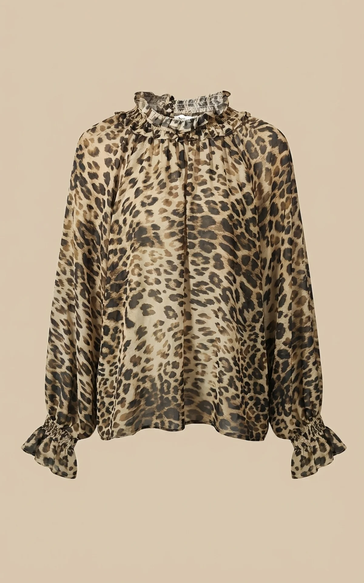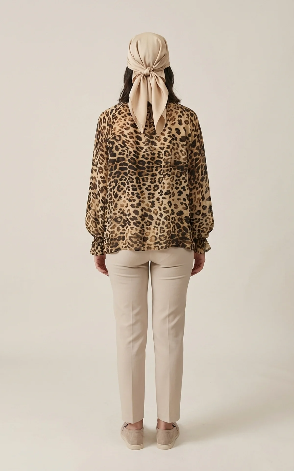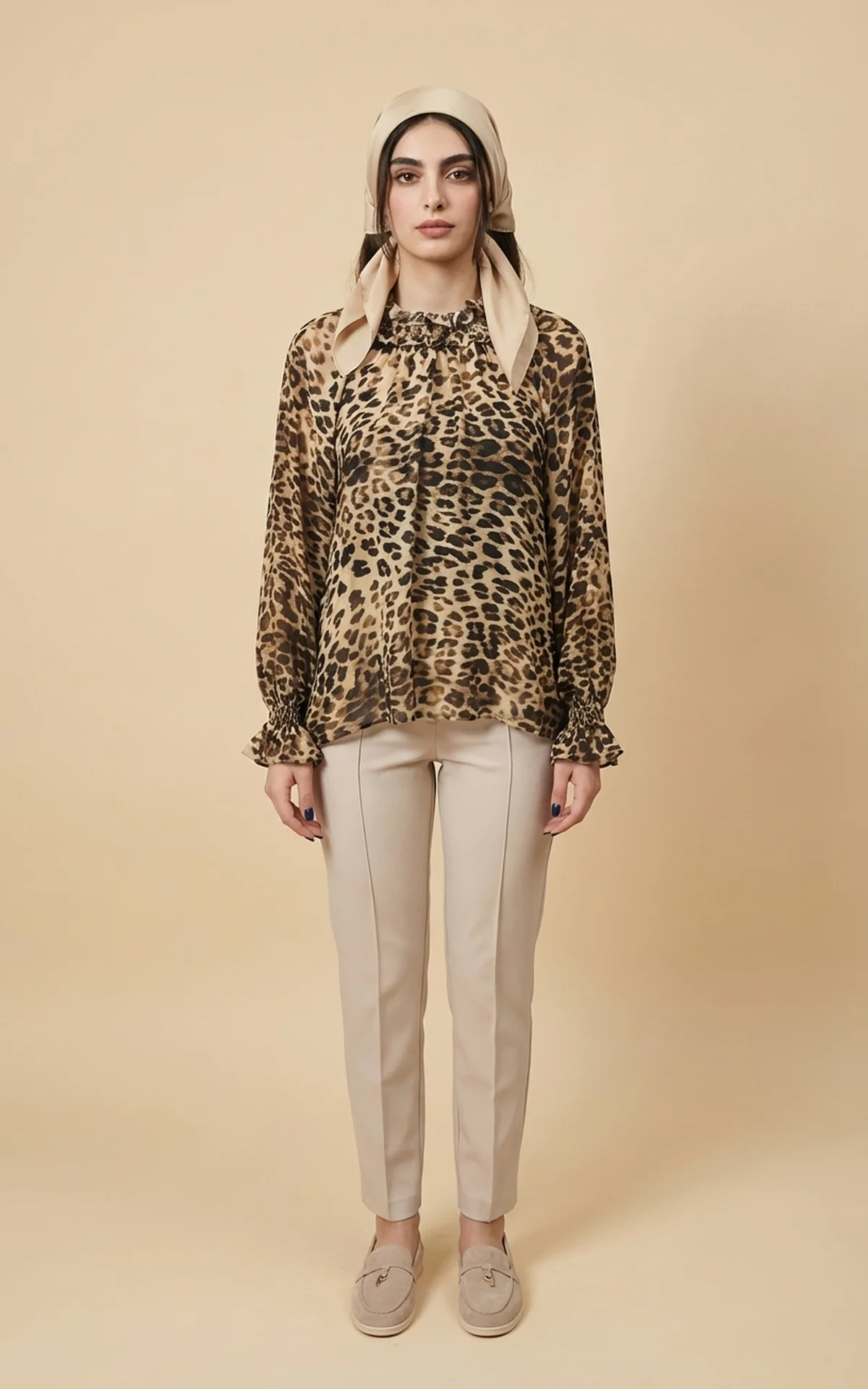 بلوز زنانه با طرح پلنگی، یقه ایستاده چیندار نوادو کد 404112191813