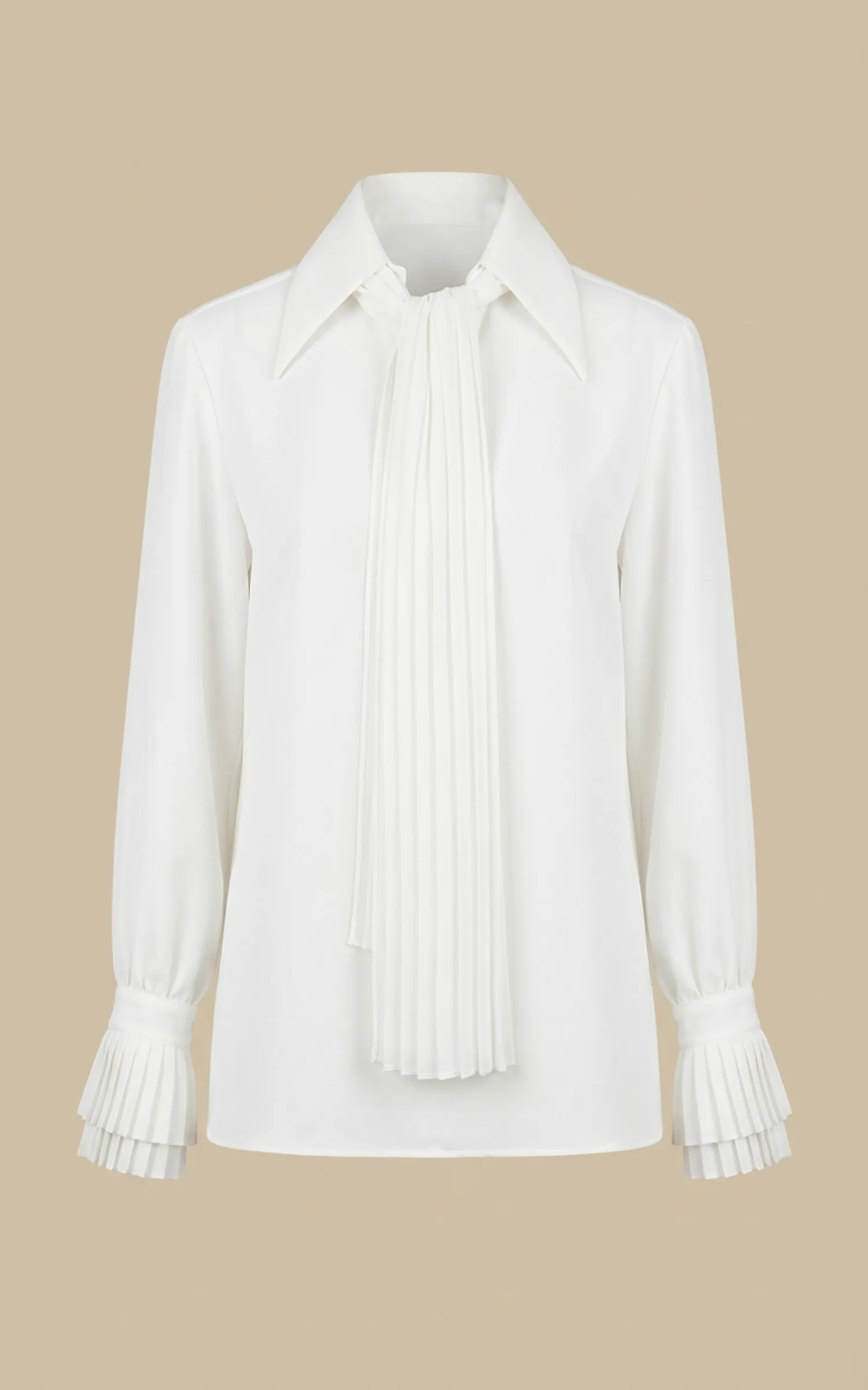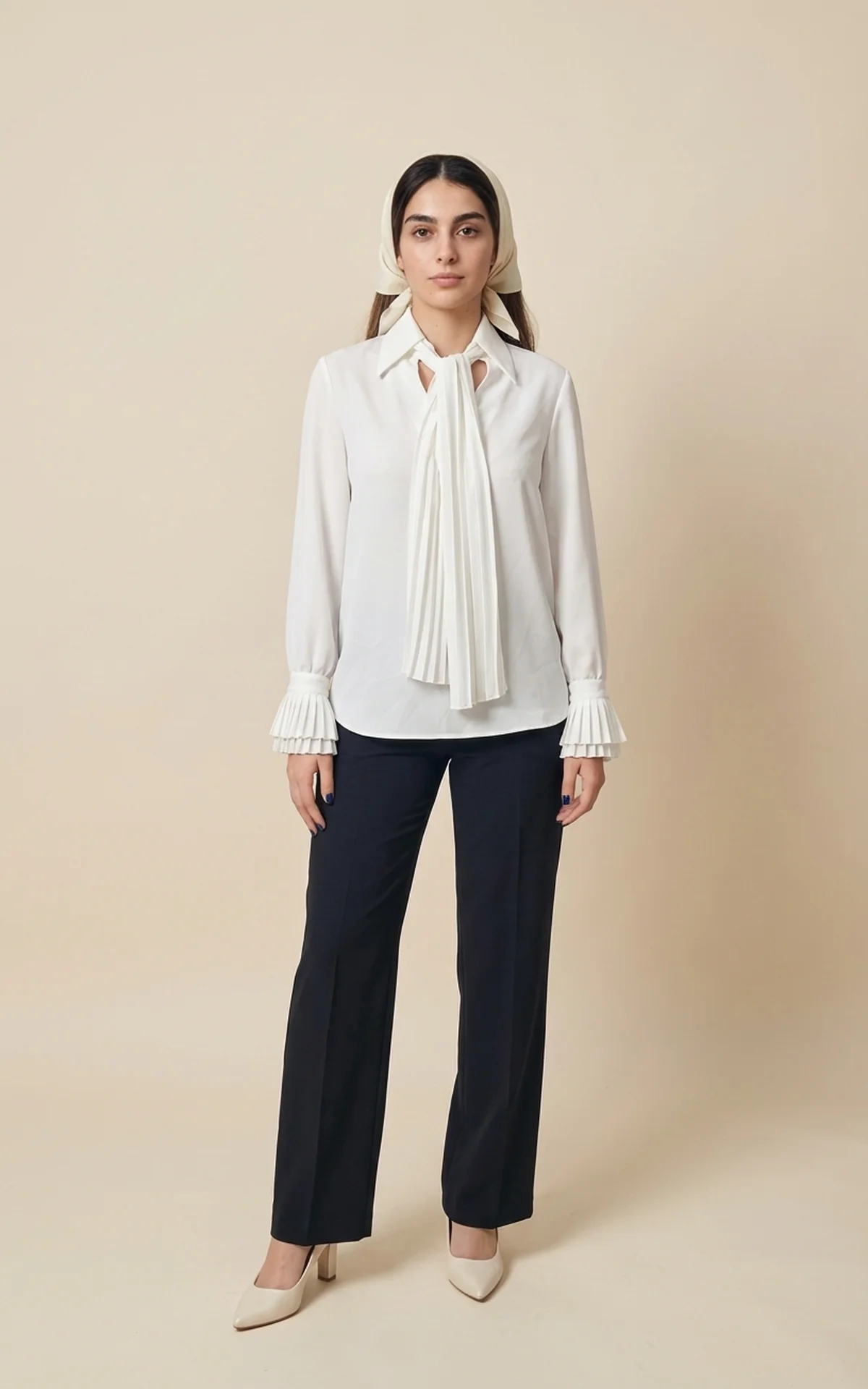 بلوز زنانه سفید با یقه کراواتی پهن و آستینهای بلند نوادو کد 404112221572