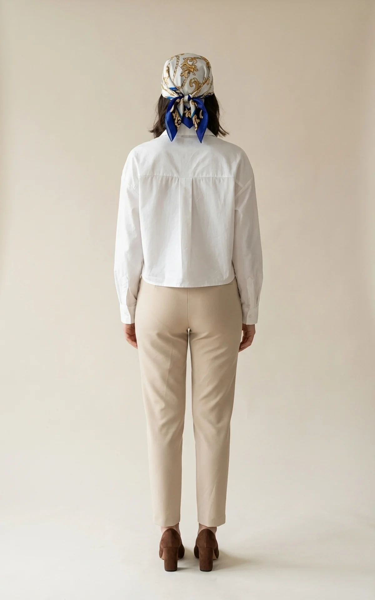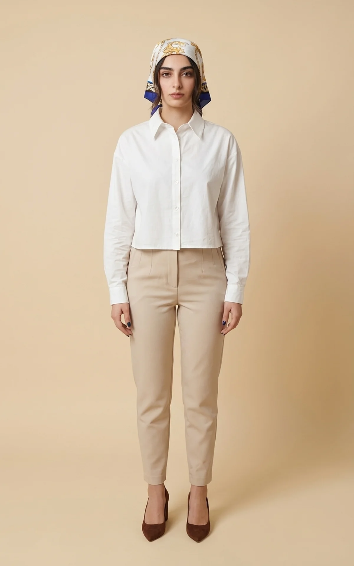 بلوز زنانه سفید کتان با قد کوتاه نوادو کد 404112271667