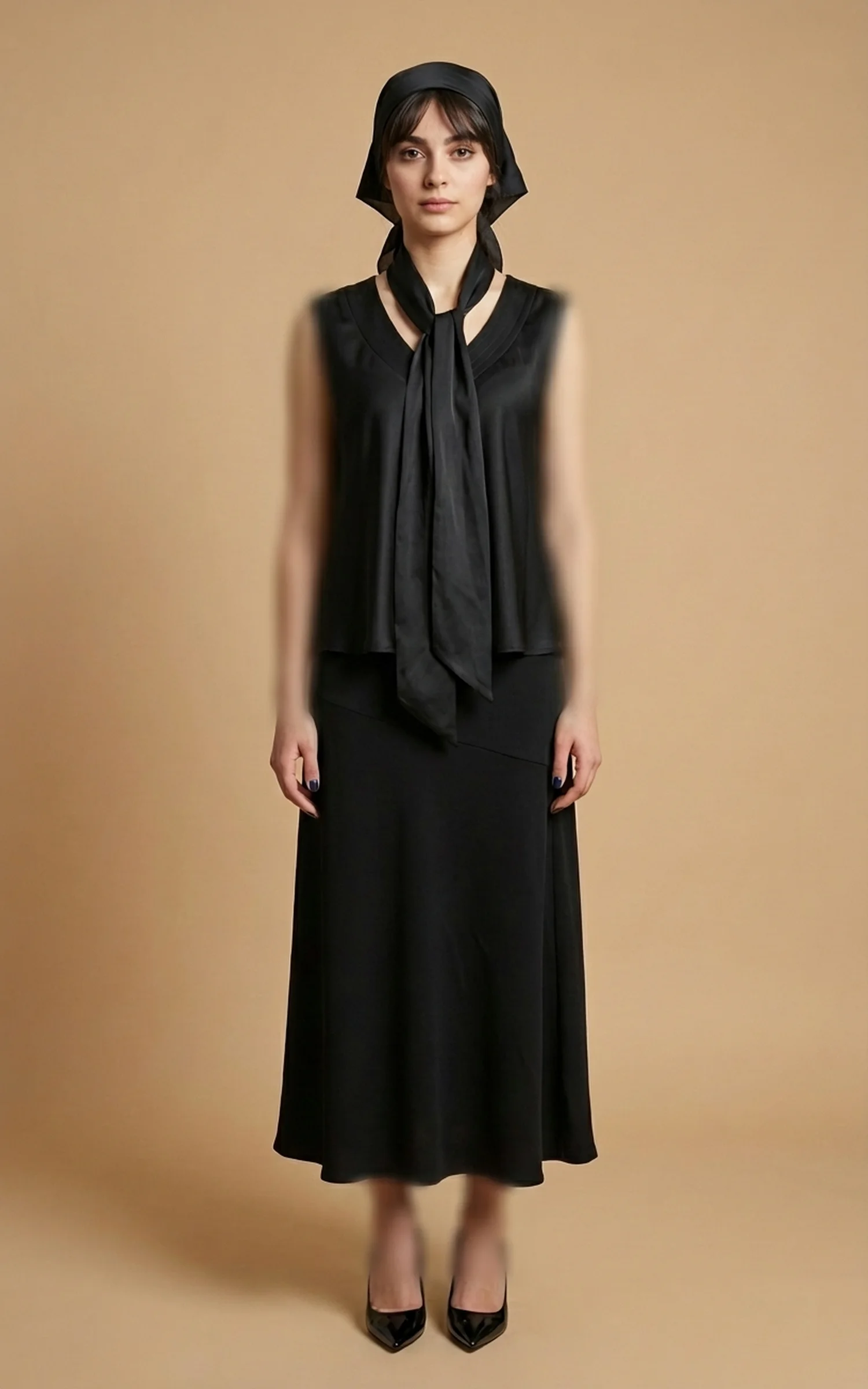 بلوز مشکی بدون آستین با پاپیون یقه زنانه نوادو کد 404112301744
