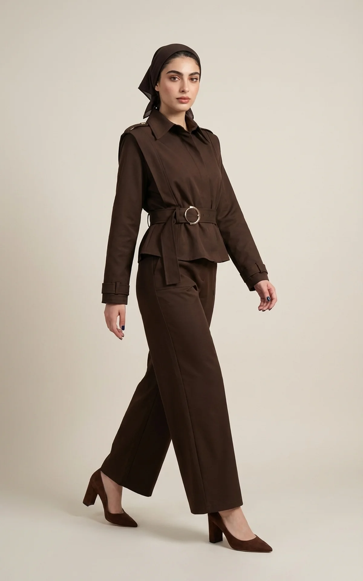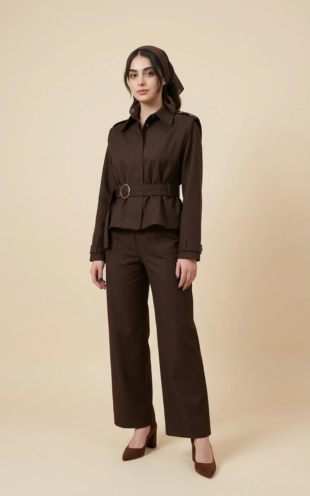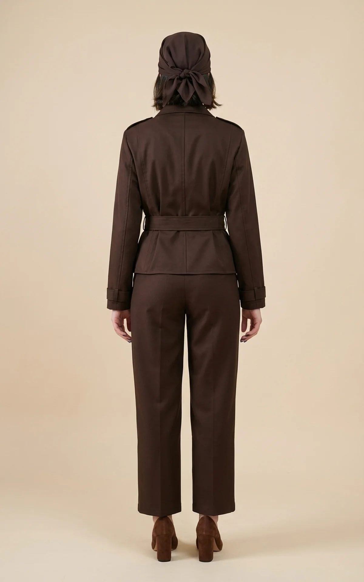 کت زنانه قهوهای تیره با یقه انگلیسی پهن نوادو کد 404113211763