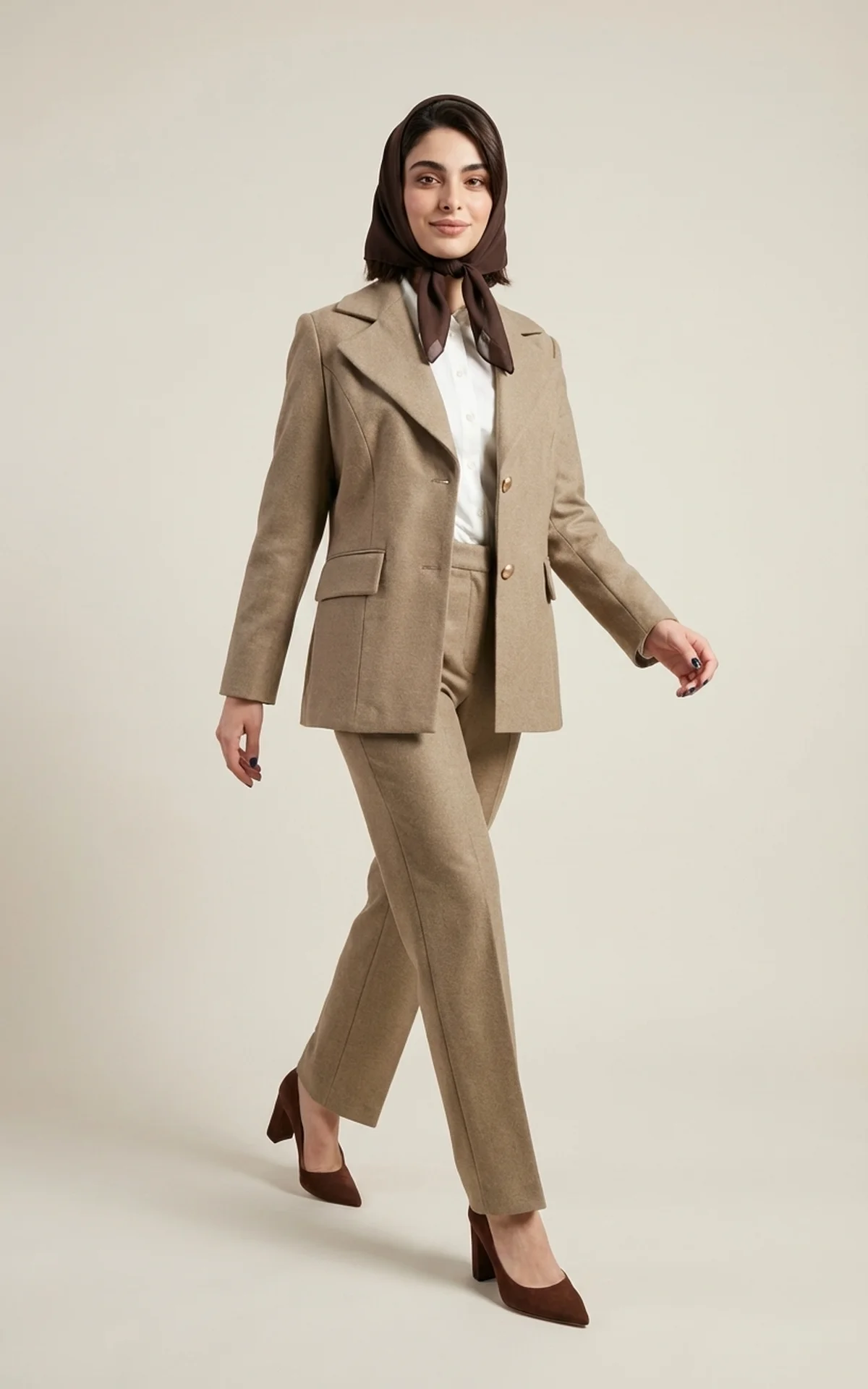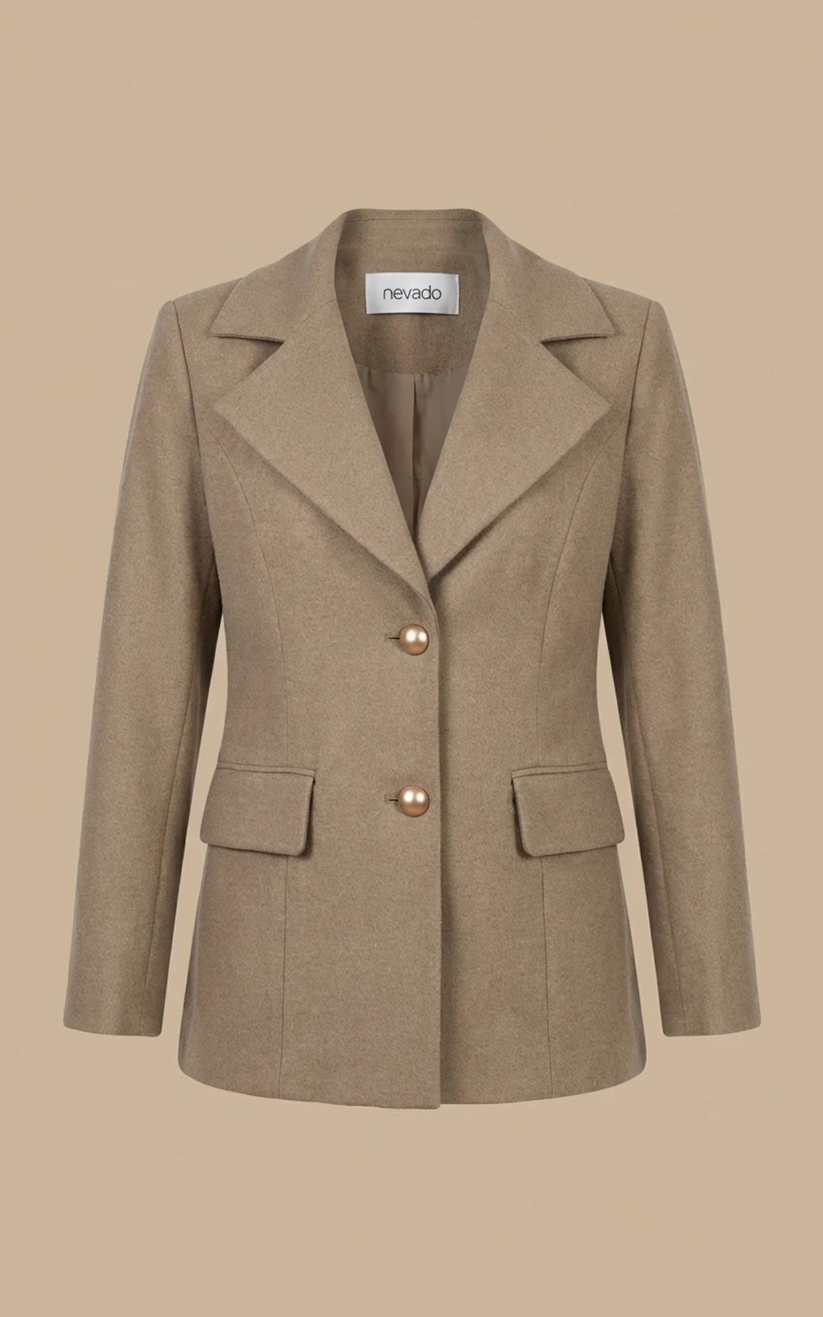 کت زنانه بژ دکمهدار با یقه انگلیسی نوادو کد 404113241842