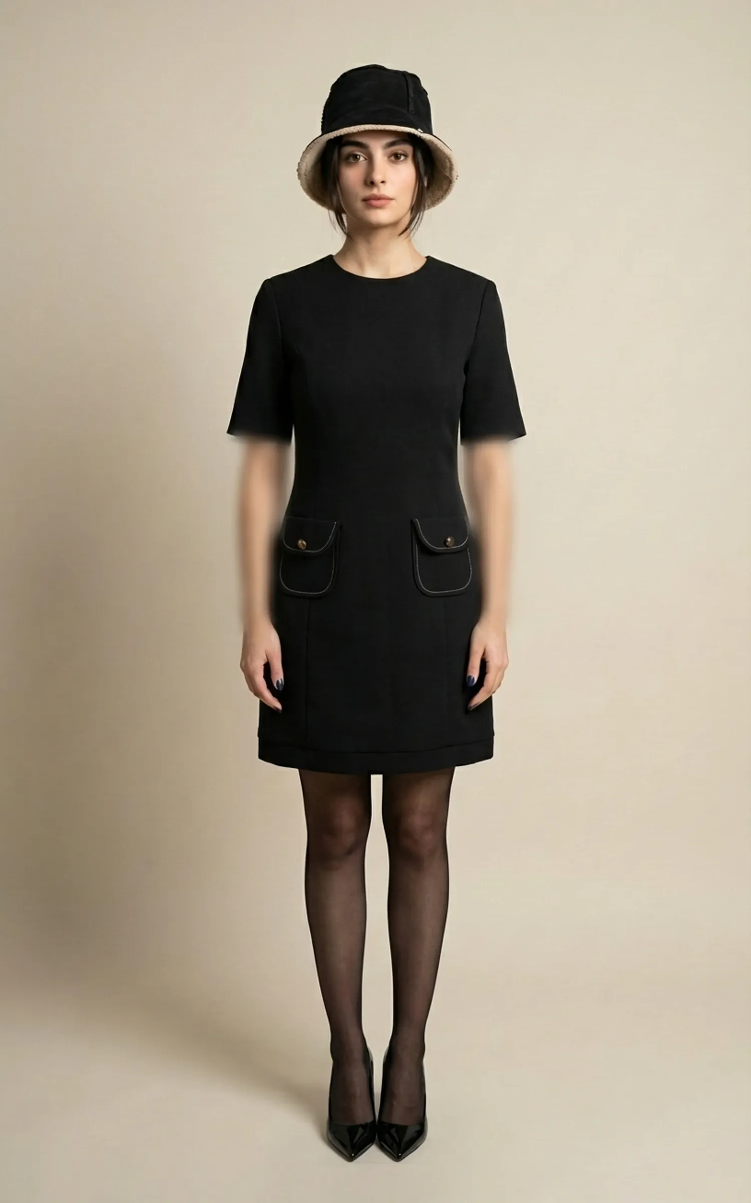 پیراهن زنانه مشکی کوتاه با آستینهای کوتاه نوادو کد 404114351844