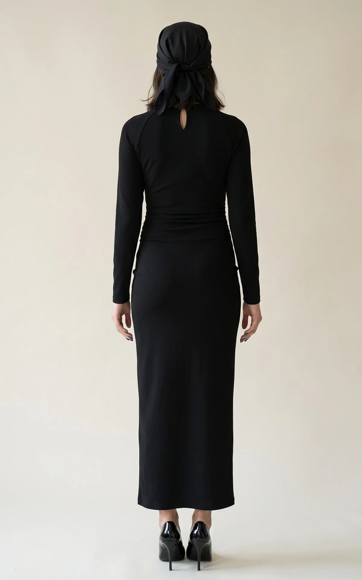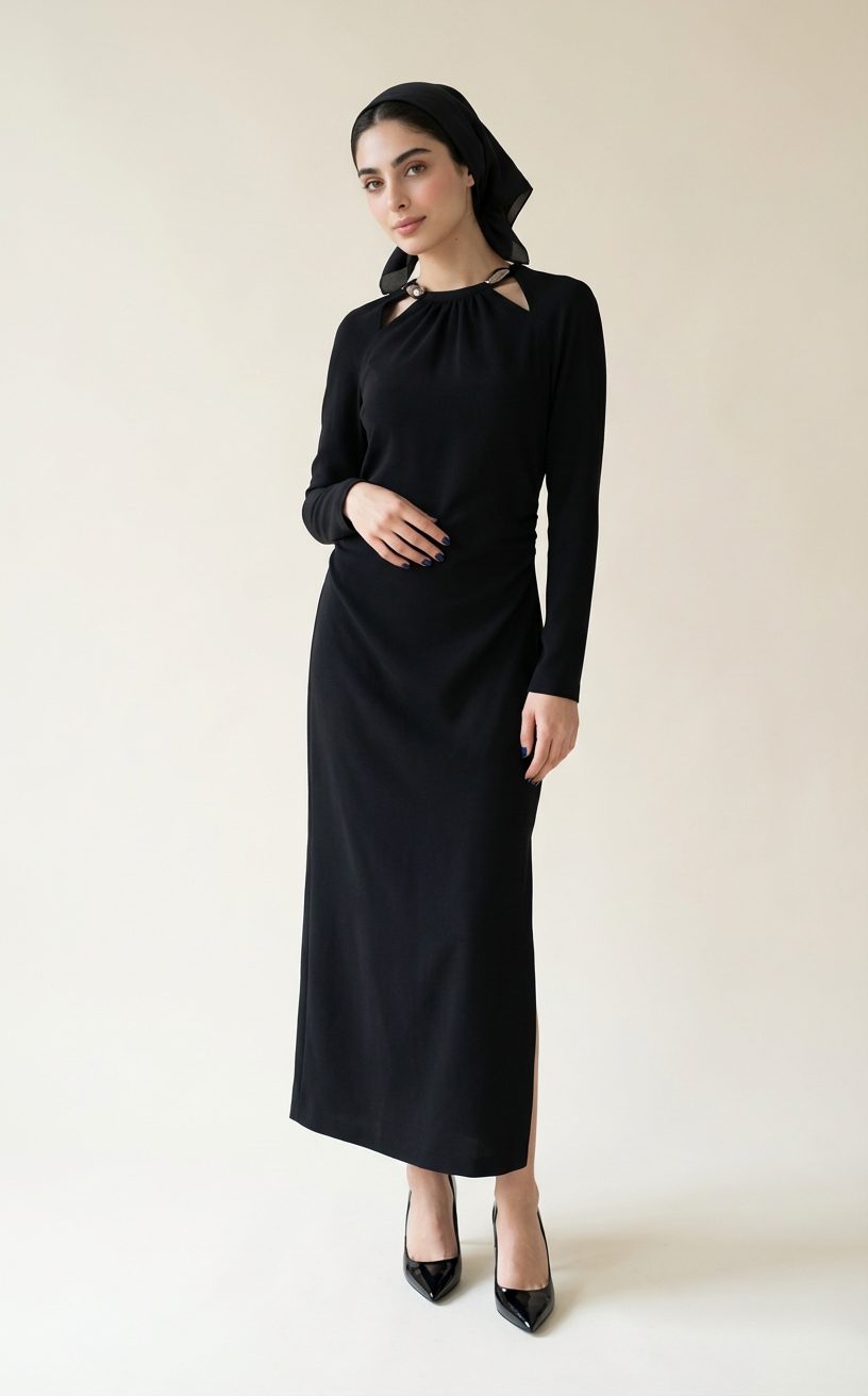 پیراهن زنانه مشکی بلند با یقه گرد نوادو کد 404114221722