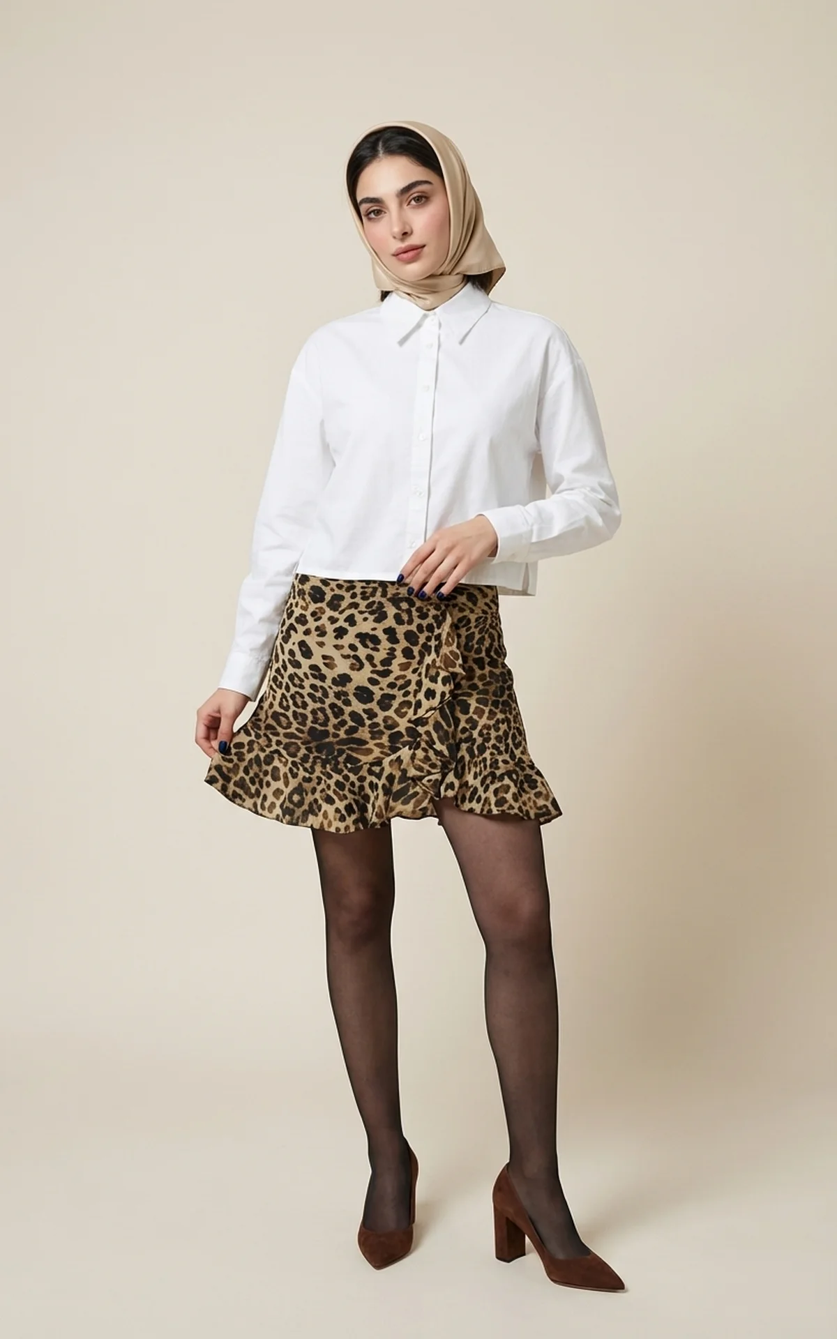 دامن کوتاه با طرح پلنگی لبههای چیندار نوادو کد 404115071813