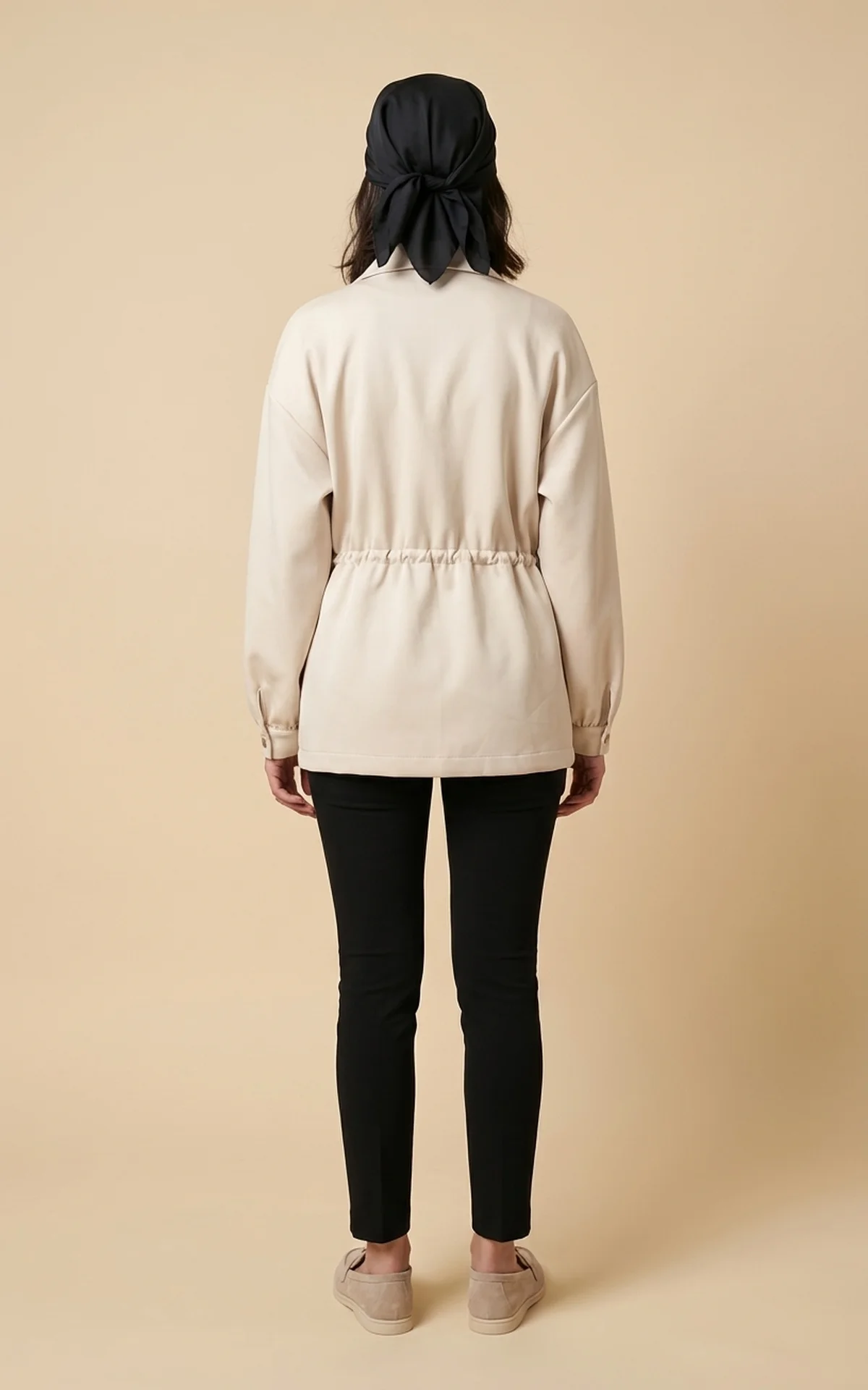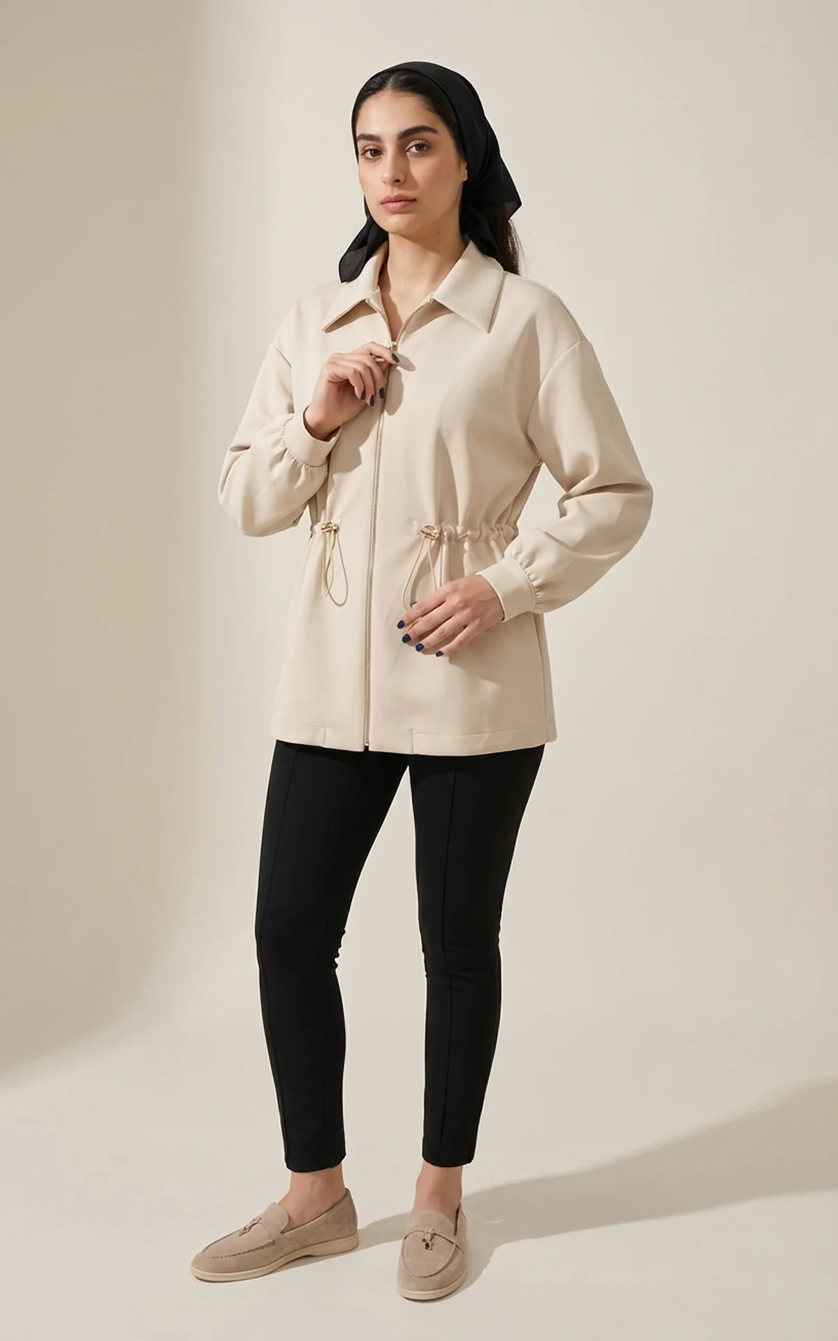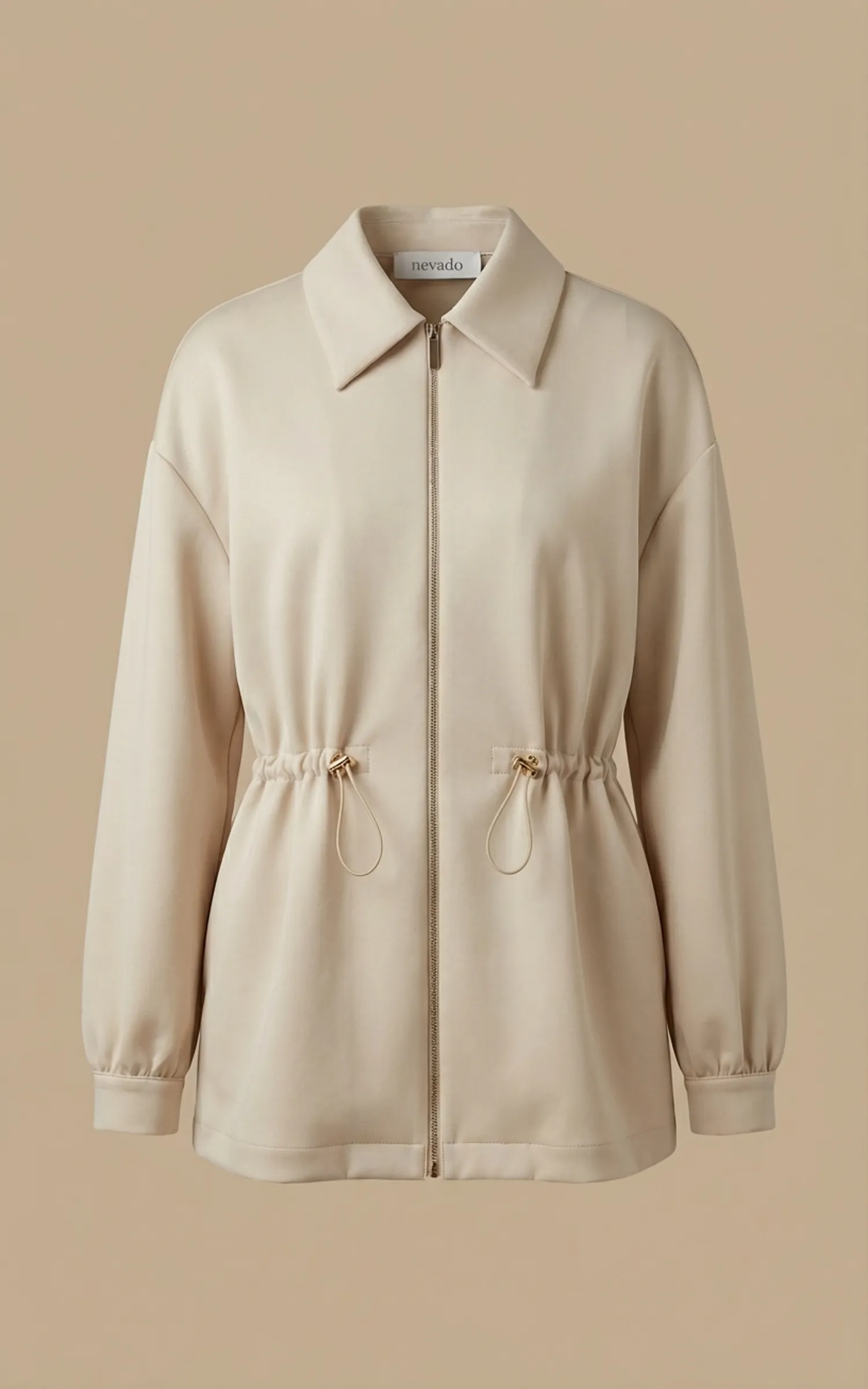 سویشرت زنانه کرم زیپدار با کمر کشی گرهدار نوادو کد 404127011819